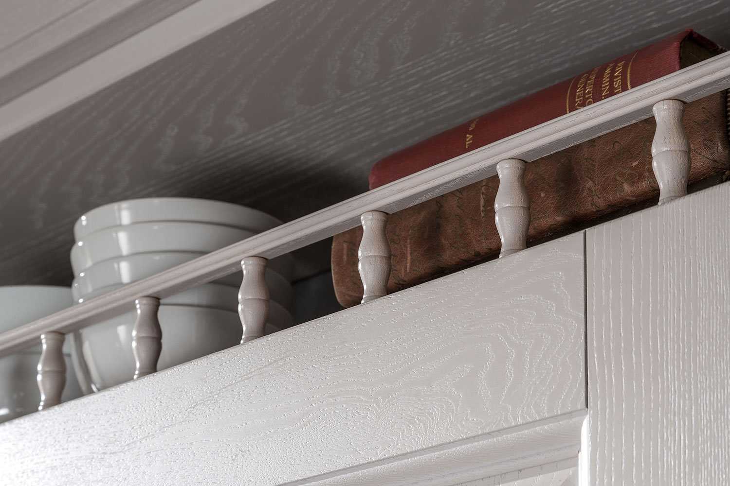 Cucina in legno massello di frassino, Telma è un programma componibile versatile, di alta qualità, studiato nei minimi particolari. Le ante, di alta manifattura, sono di spessore 24 mm e presentano telaio e pannello centrale in legno massello di frassino.