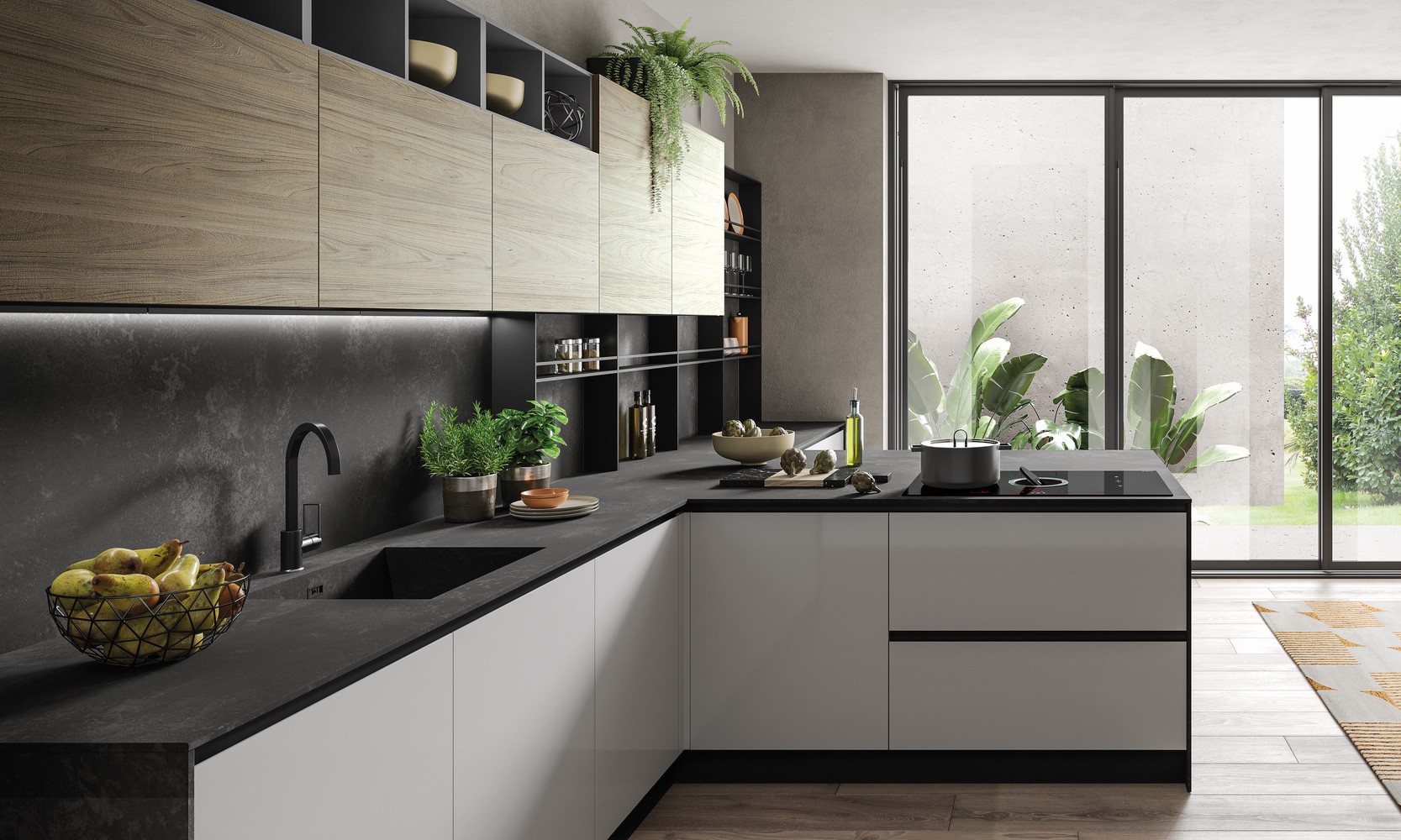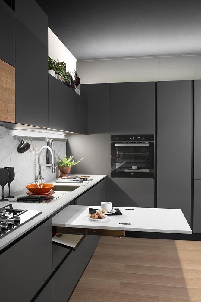 Evo cucine implementa nella sua collezione il modello Rio, versatile e dinamico dal ritmo energico.