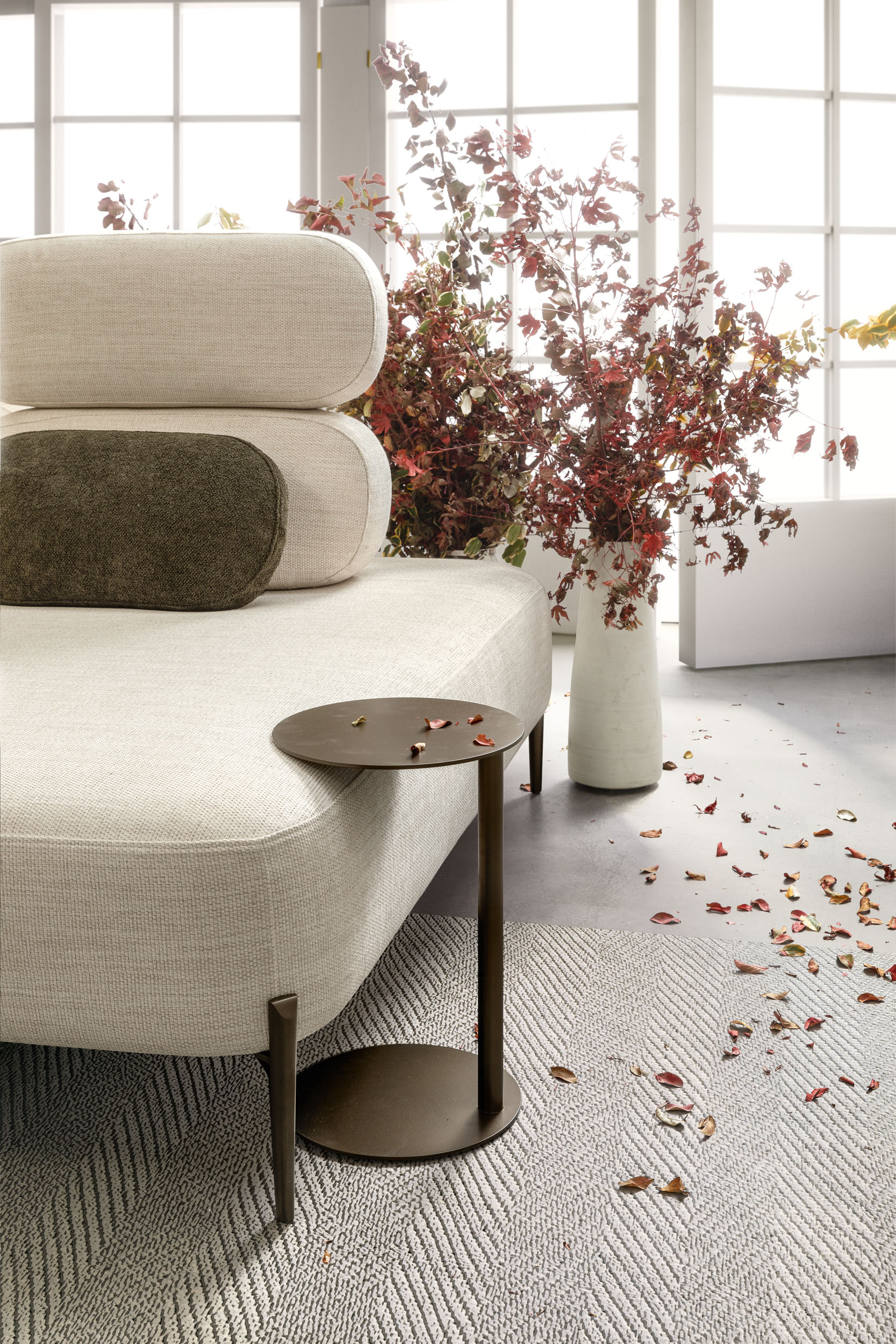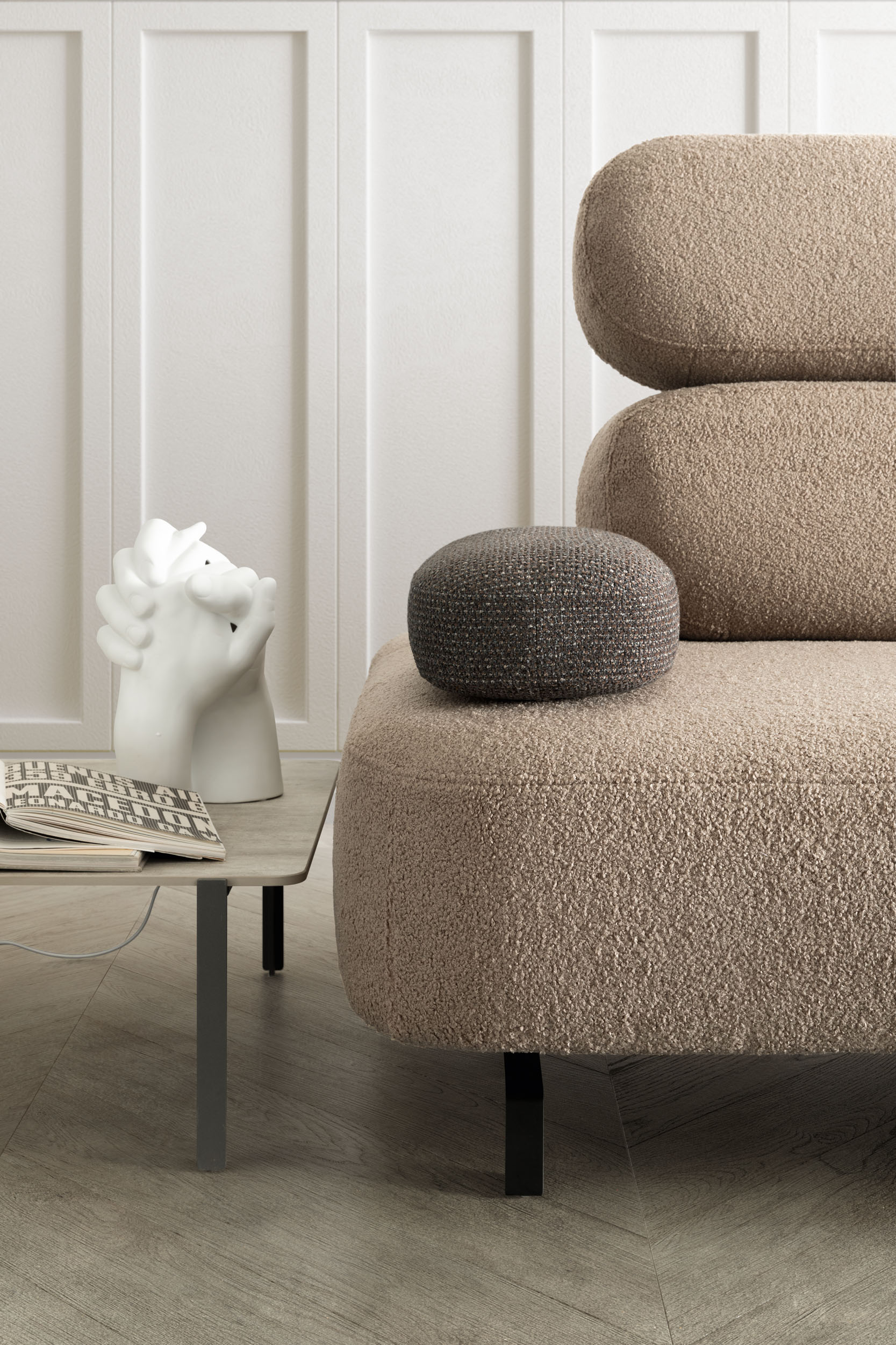 Avalon, frutto di un percorso progettuale eccentrico e innovativo, in cui le linee morbide e sinuose diventano protagoniste. Oltre al movimento traslante orizzontale, il poggiatesta dei cuscini schienali sono regolabili con un meccanismo a scatti.Grazie alle sue caratteristiche e alle possibilità compositive si può scegliere di avere una seduta ampia e comoda per distendersi o di aggiungere moduli per creare una situazione conviviale di intrattenimento degli ospiti.