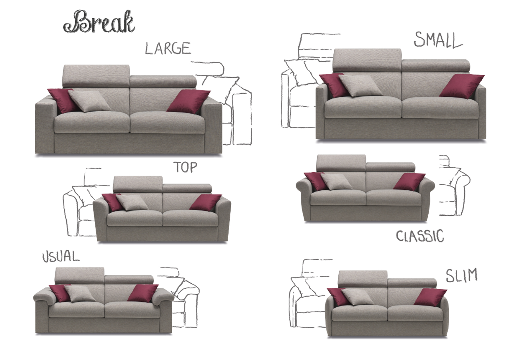 I modelli della collezione rispondono alle singole esigenze estetiche e di spazio, grazie alla scelta dei braccioli.