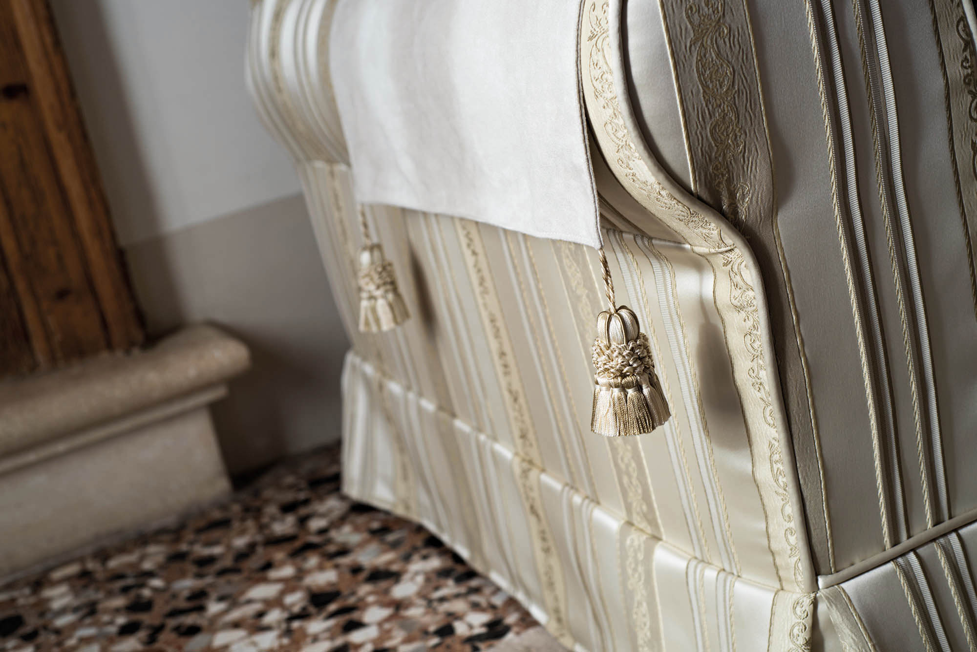 Composizioni descritte da tonalità tenui e discrete dove spiccano finiture e decori di assoluto pregio.