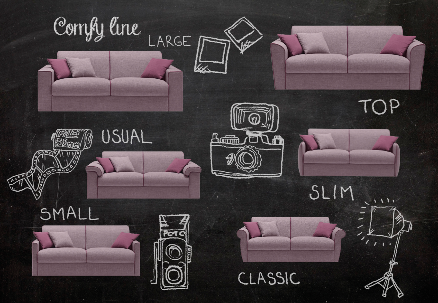 I modelli della collezione rispondono alle singole esigenze estetiche e di spazio, grazie alla scelta dei braccioli.