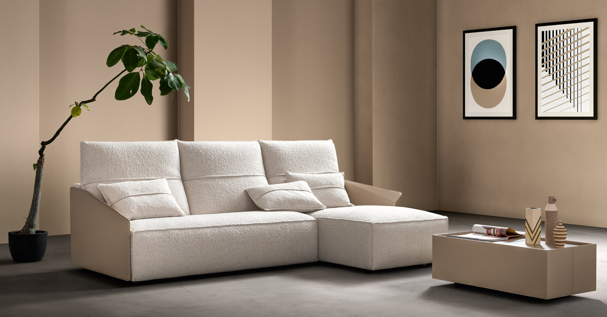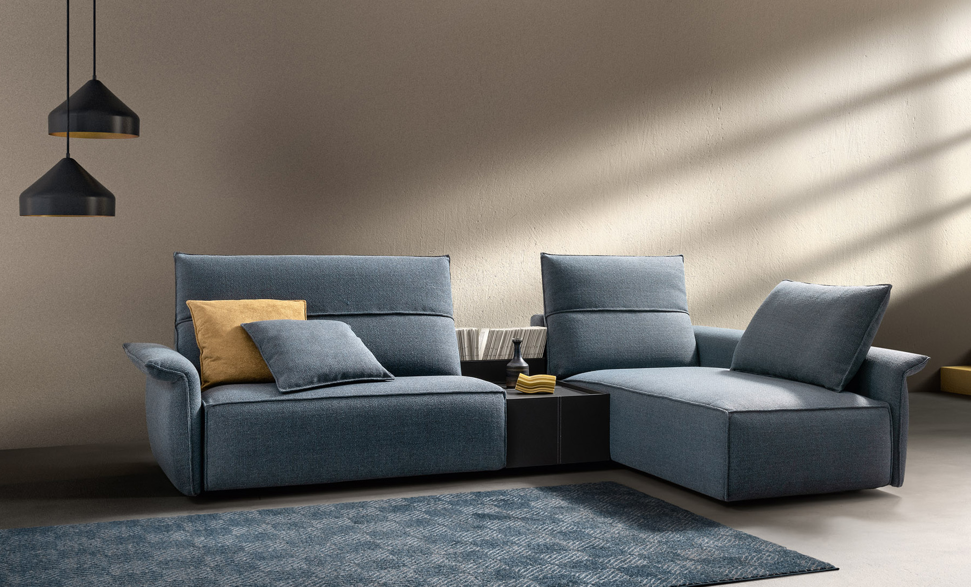 Deep Vibe anche nella declinazione con complementi Hit in cuoio, è un divano espressione di personalità e freschezza progettato sugli equilibri dei volumi e delle forme. La componibilità semplice e razionale favorita dalle diverse misure degli elementi, lo rendono protagonista della zona giorno.