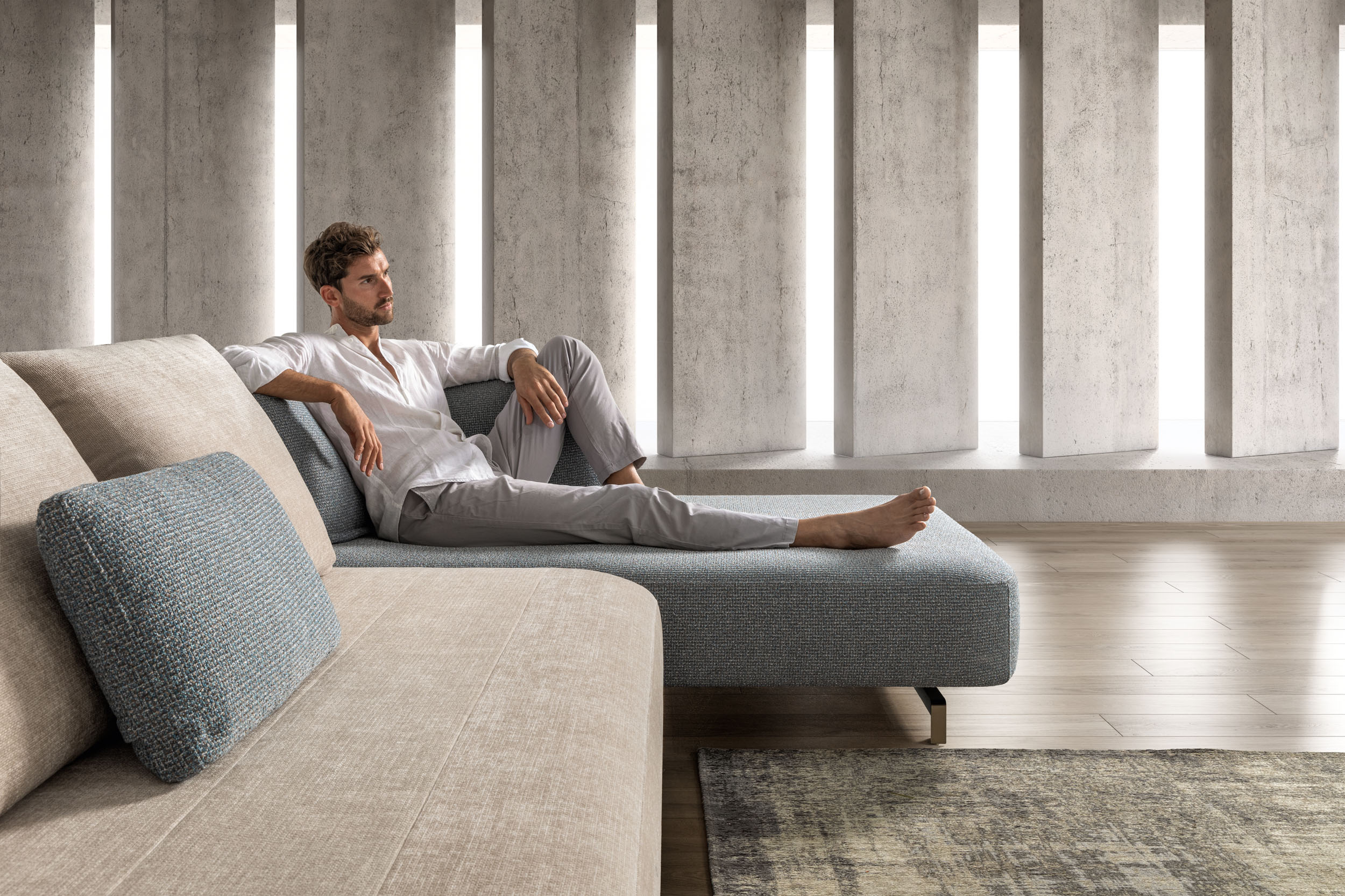Matrix con le sue forme arrotondate in contrapposizione alle linee rigorose degli spazi moderni, rende l’ambiente ovattato e riposante un luogo in cui potersi rifugiare. La massima libertà compositiva che lo contraddistingue, permette di adattarsi ad ogni esigenza di relax in modo innovativo ed originale.