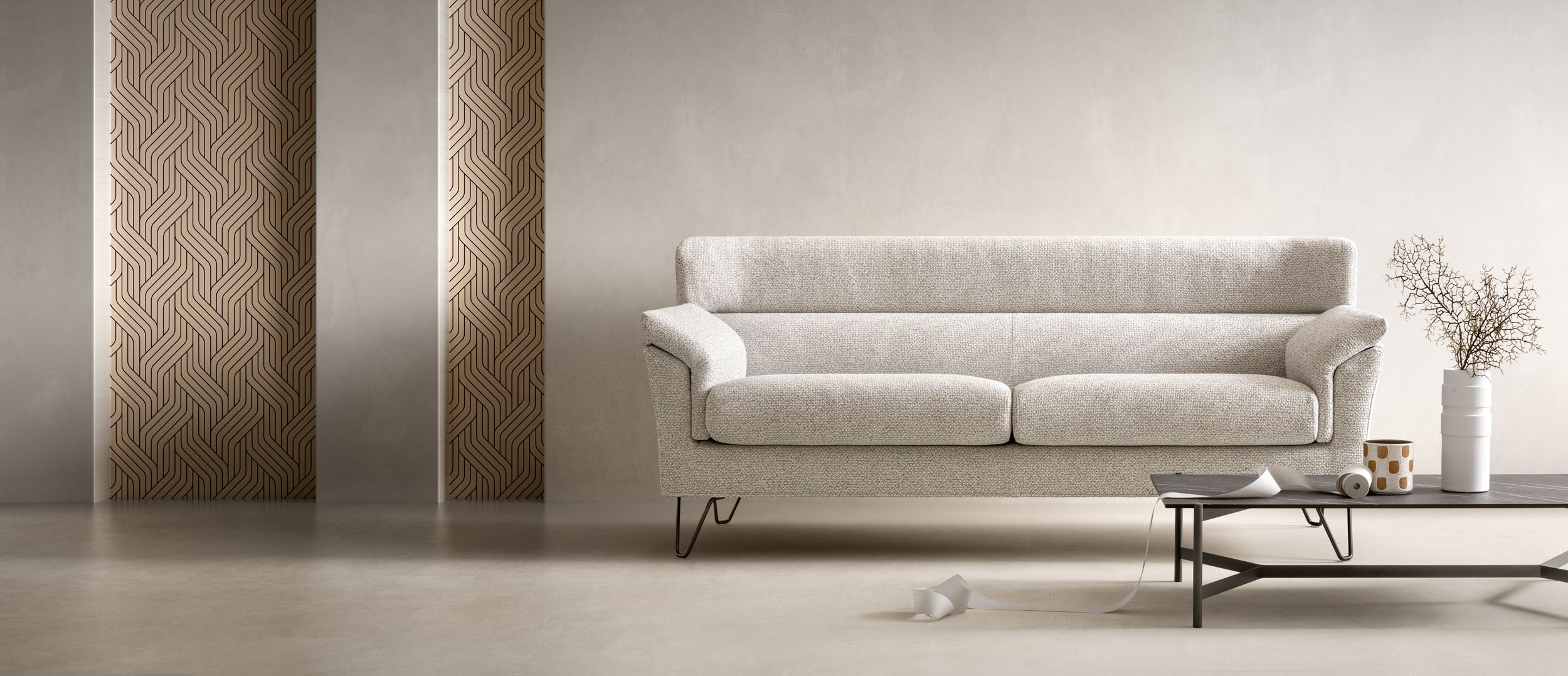 Quick è un divano compatto, con le sue forme tradizionali ed eleganti arreda con stile anche gli spazi moderni più contenuti.