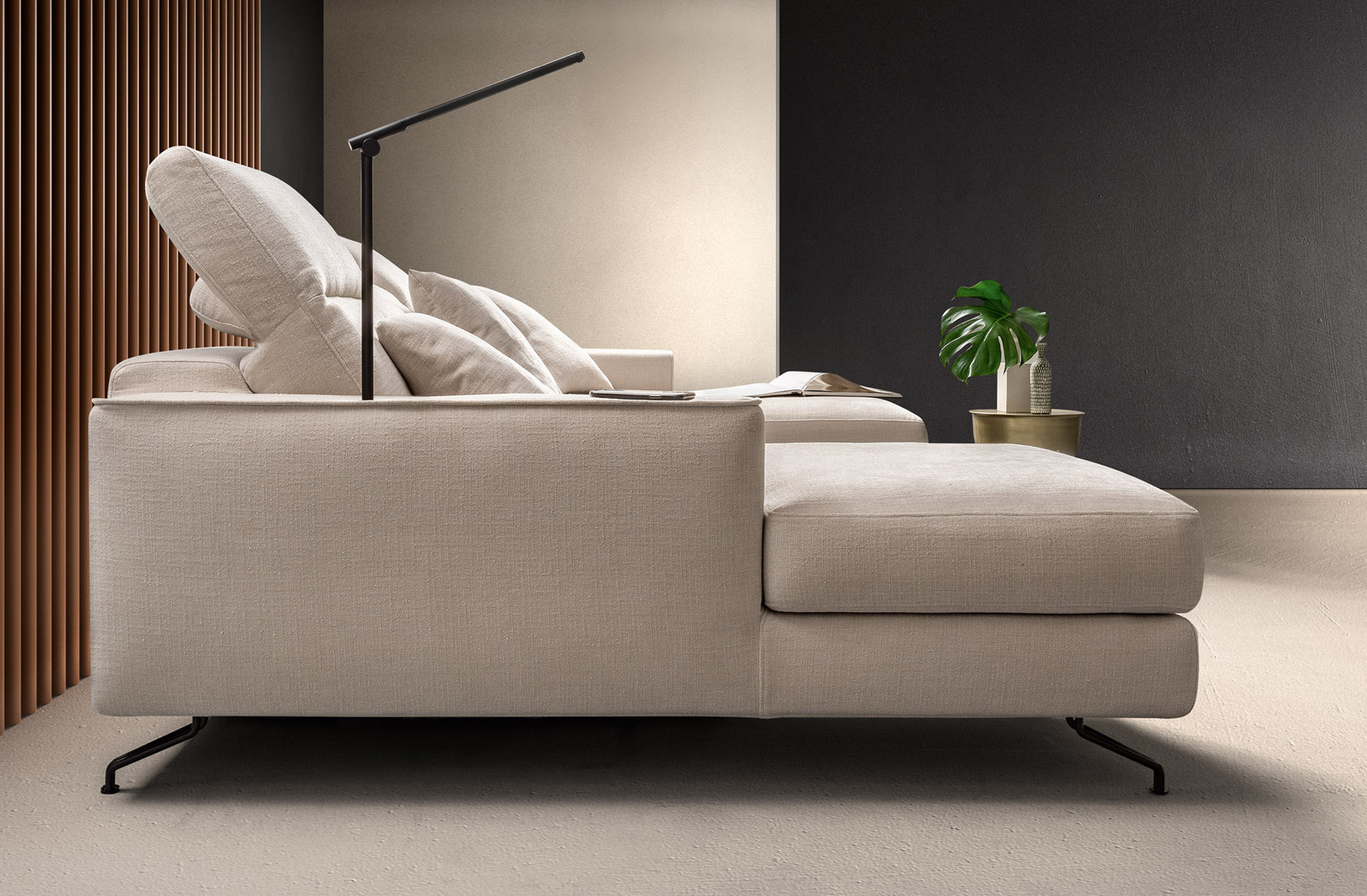 Space Express è il risultato di una ricerca di proporzioni di volumi del bracciolo e dello schienale reclinabile, per una proposta ideale di relax.
