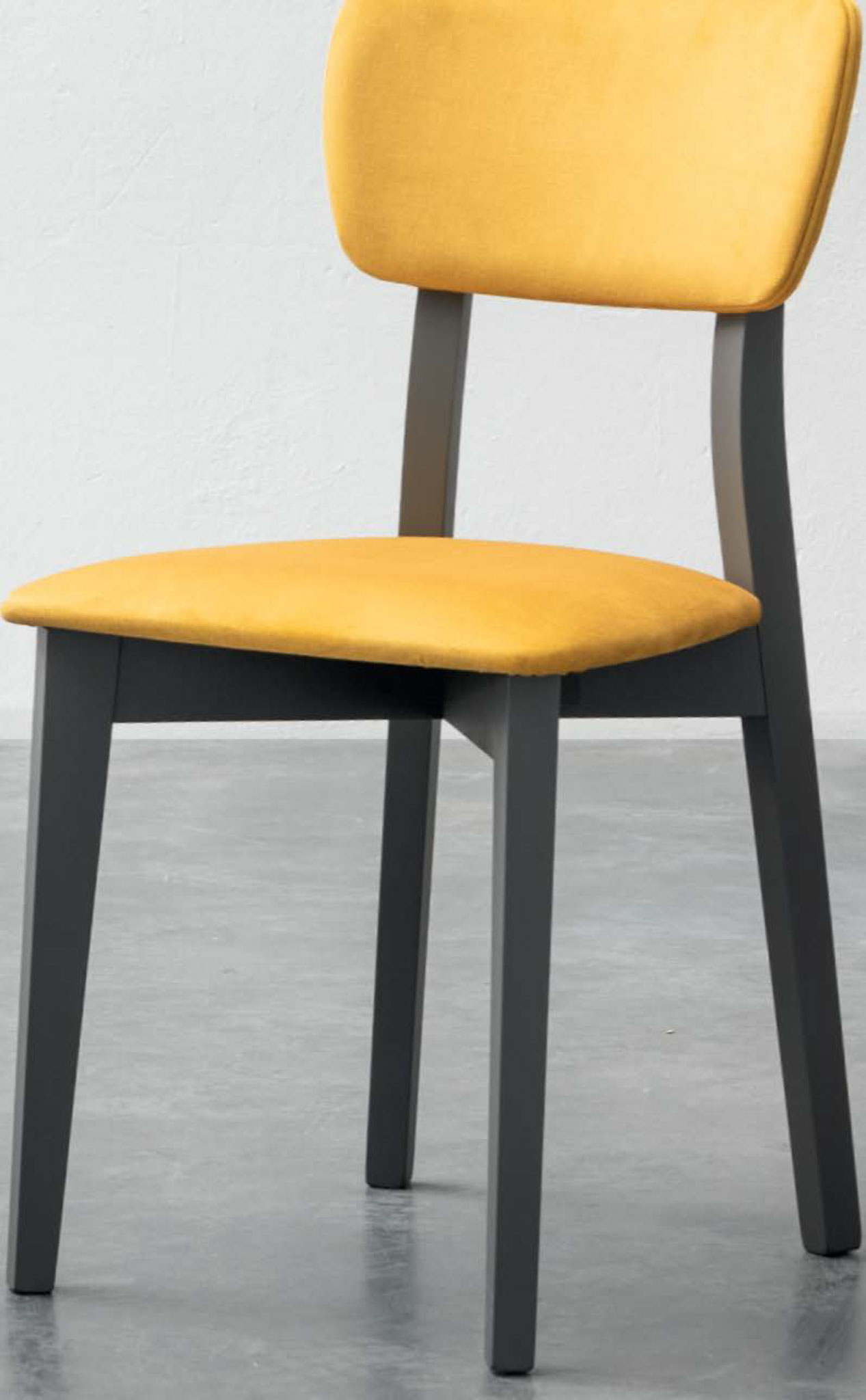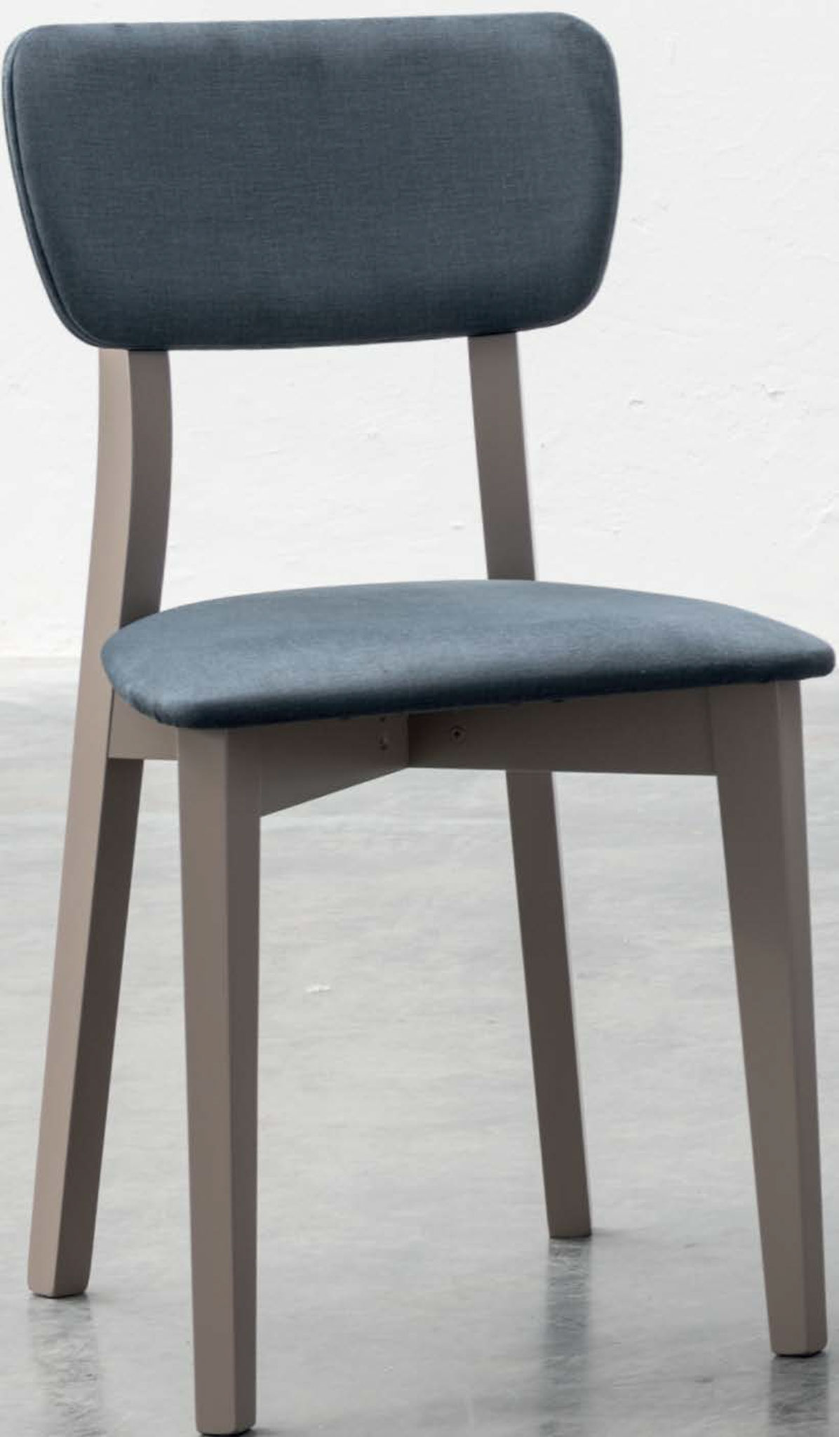 Sedia con seduta e schienale imbottiti, struttura in faggio