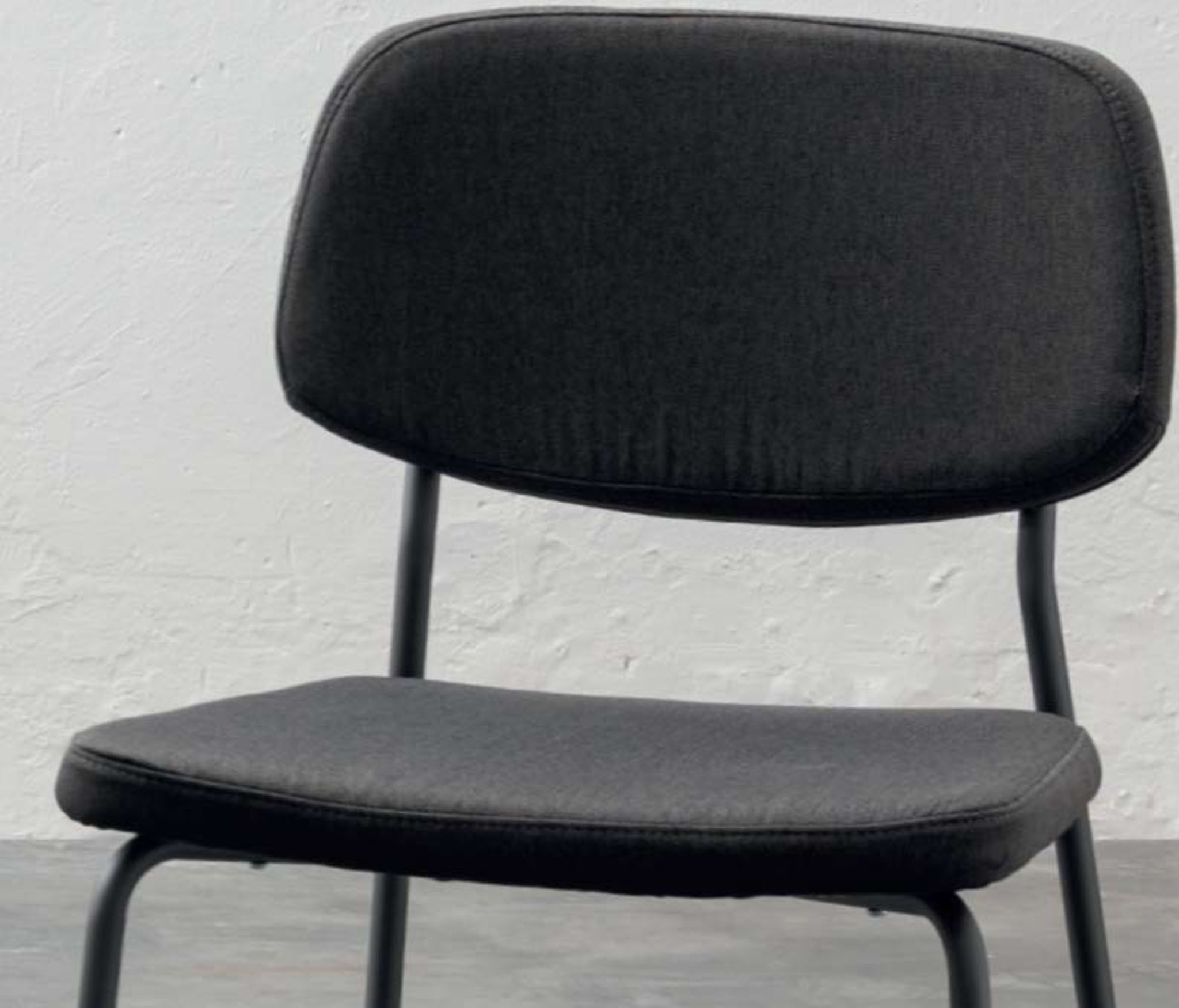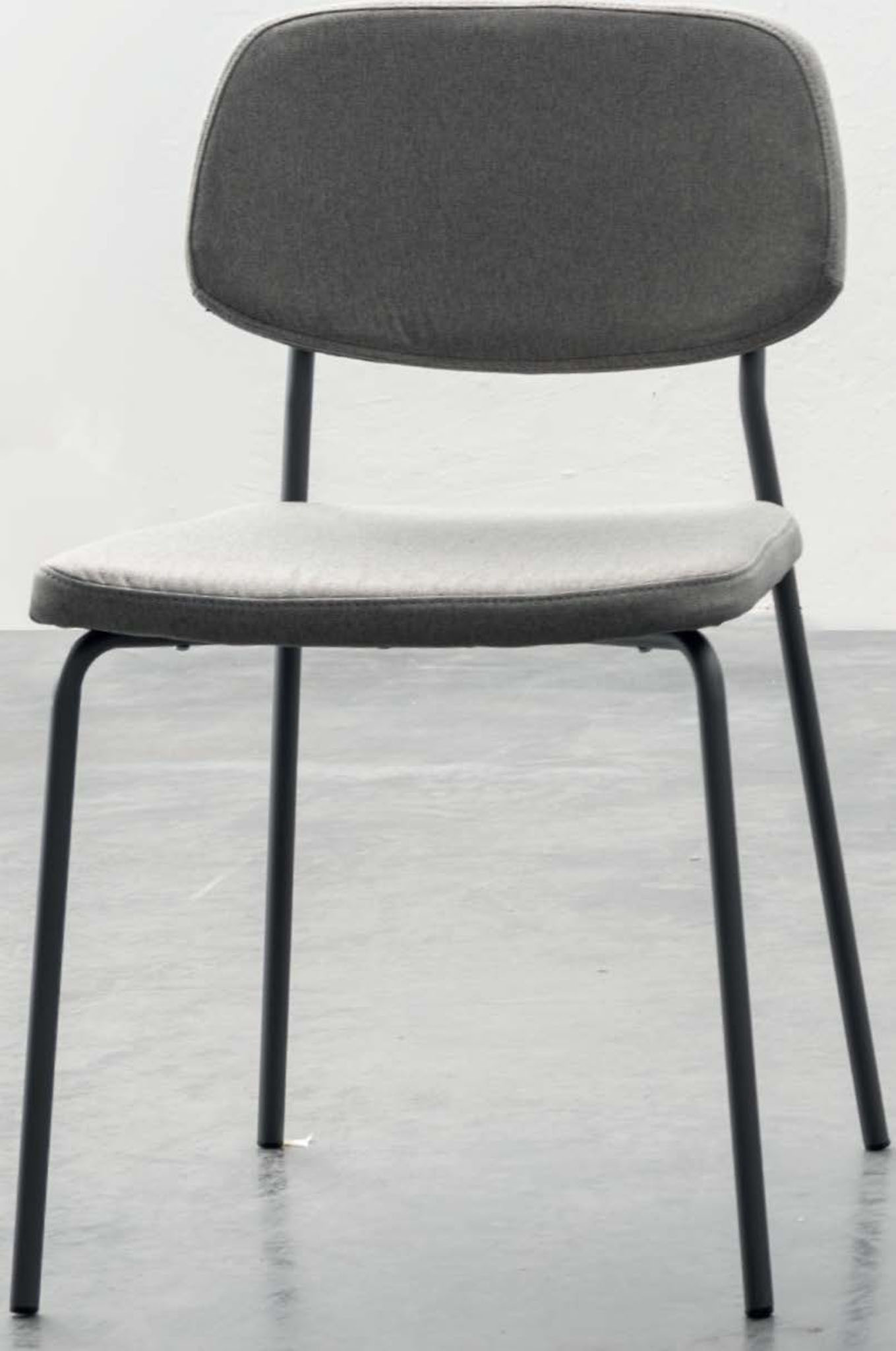 Sedia con seduta e schienale imbottiti e struttura in metallo