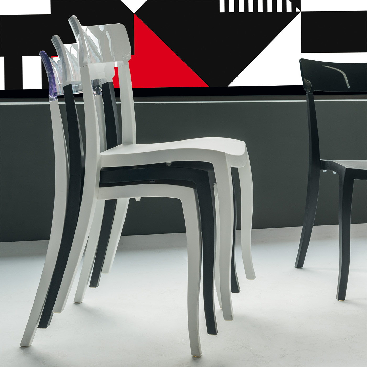 Sedia con seduta in polipropilene e schienale in policarbonato
