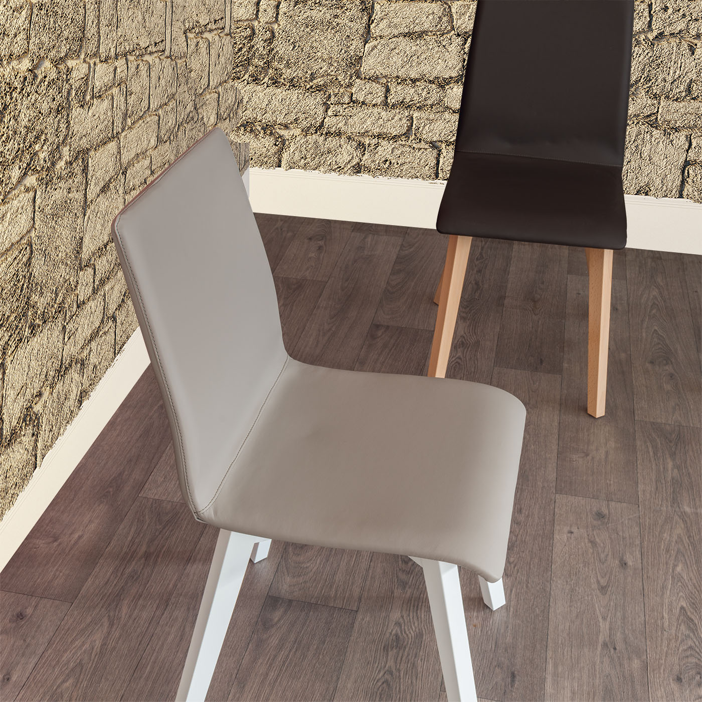 Sedia in faggio con scocca in legno rivestito ecopelle
