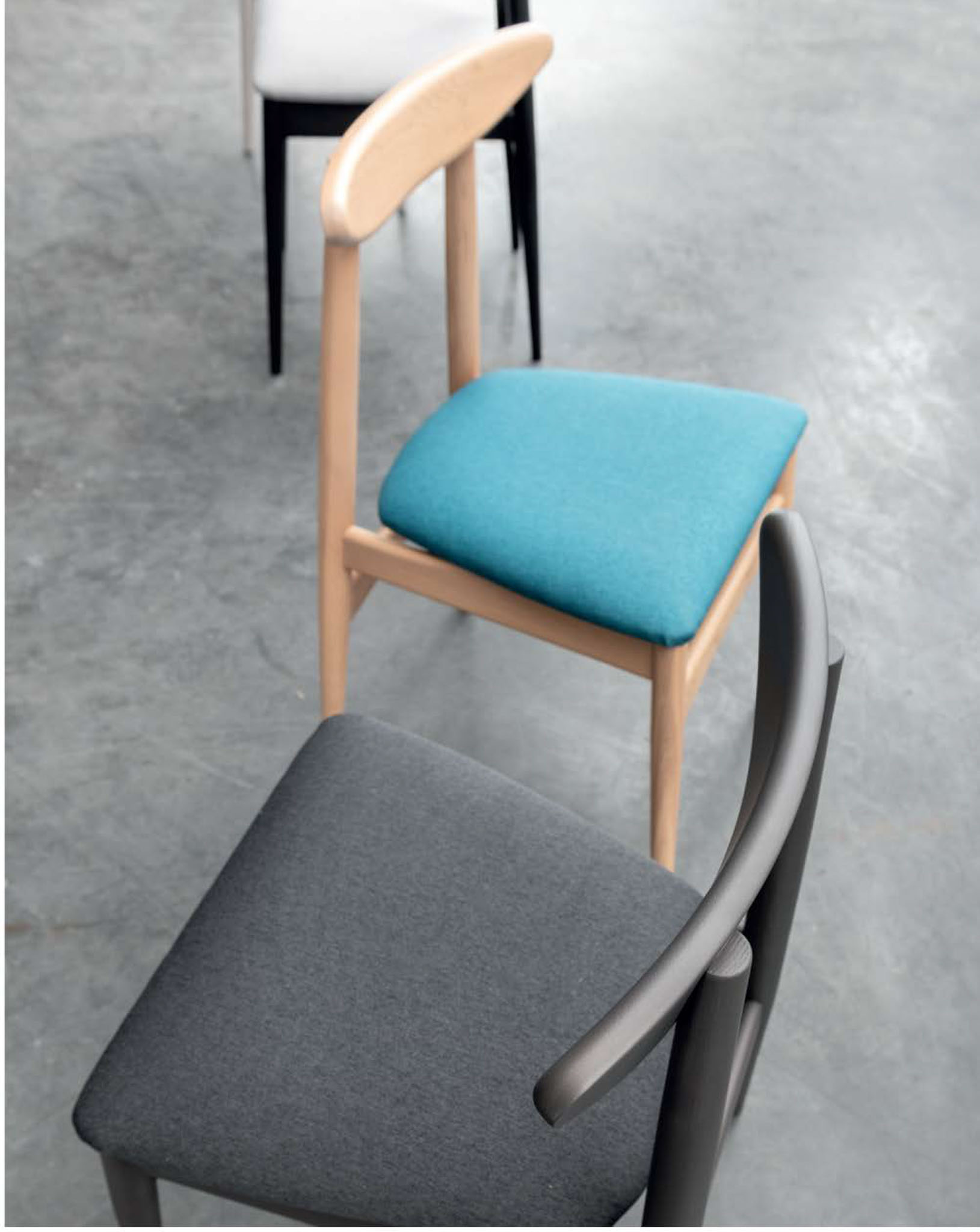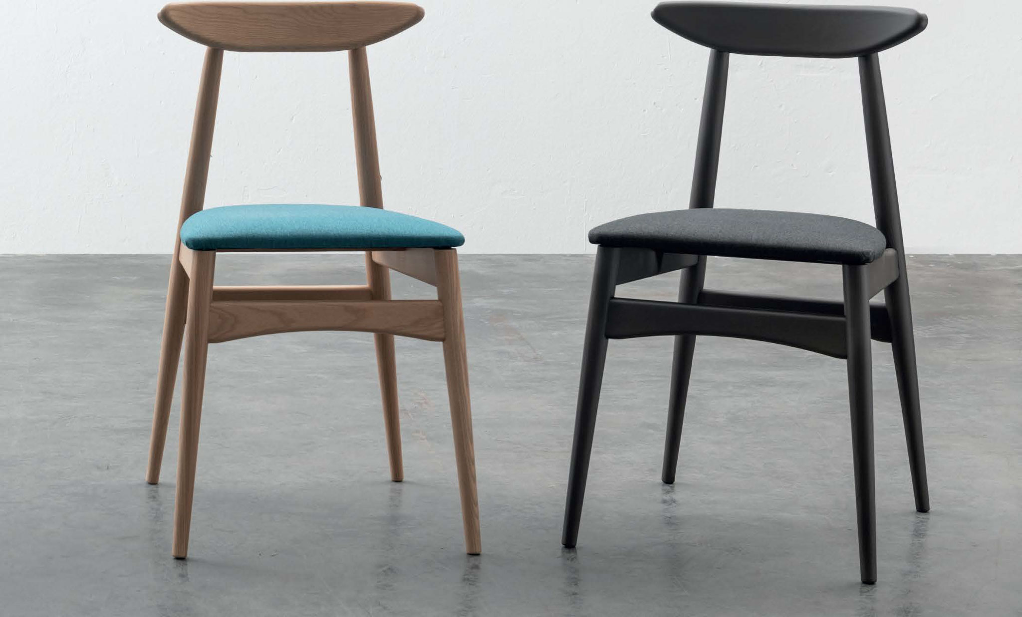 Sedia con seduta imbottita e struttura in faggio