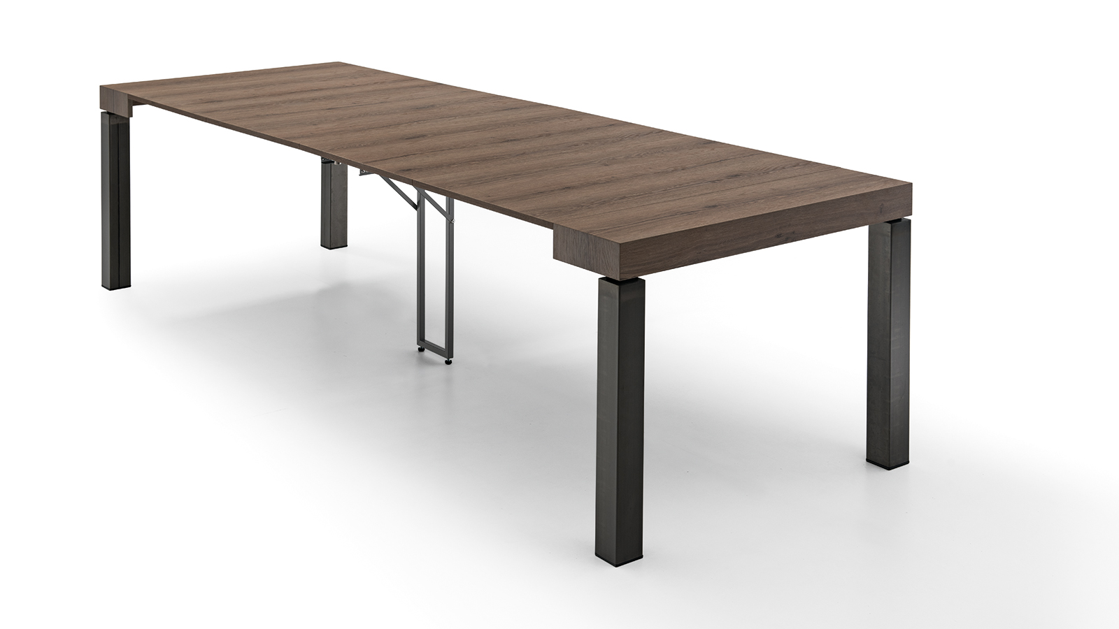 Versione Iron: Tavolo con piano in melaminico Finitura Cemento, Finitura Legno, Pietra Bianca, Pietra Nera, Pietra Grigia
