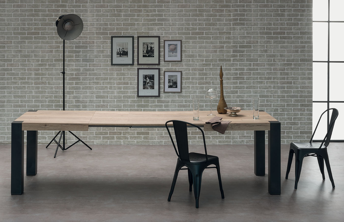 Tavolo rettangolare con piano in melaminico, telaio e gambe in ferro
