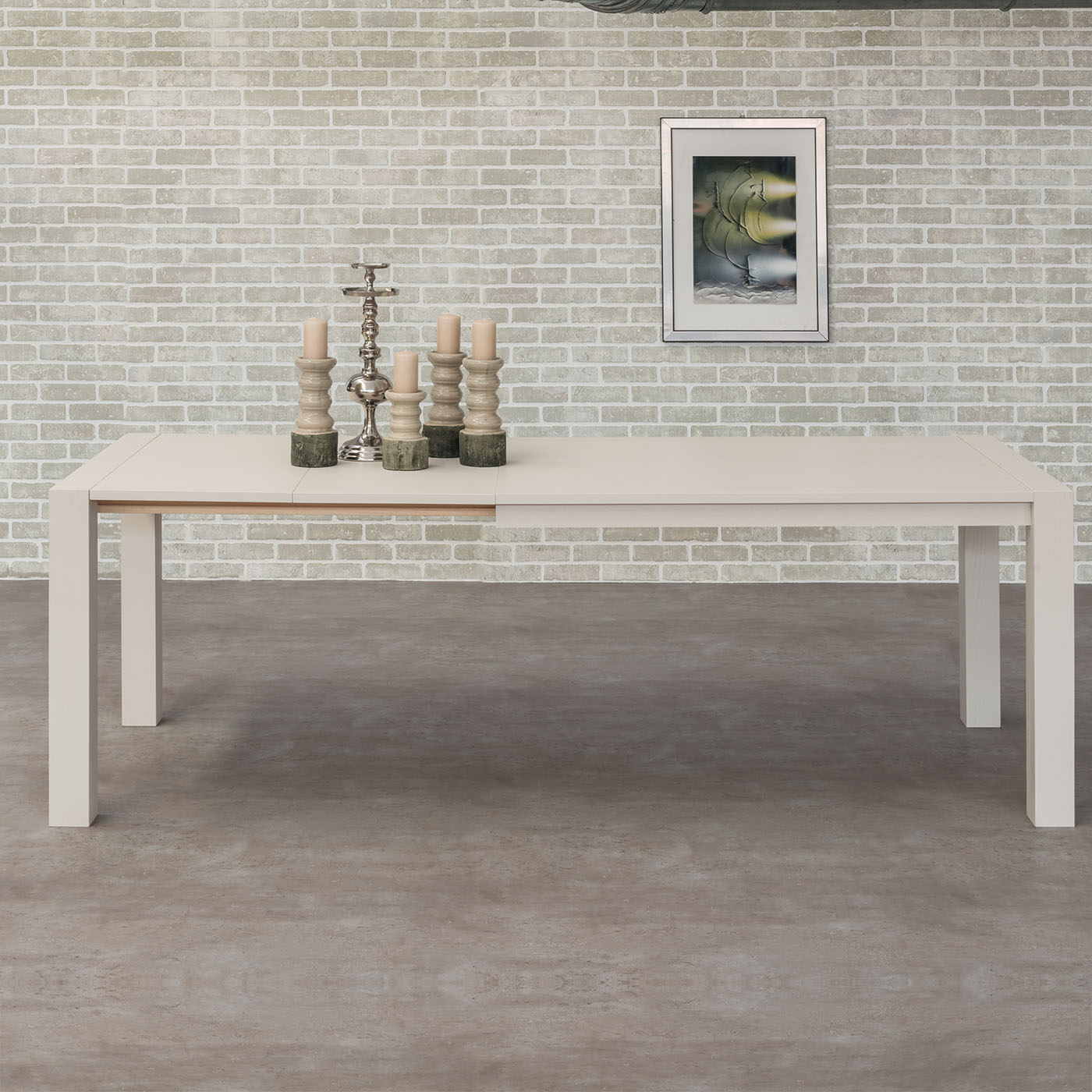 Tavolo fisso con piano impiallacciato, telaio e gambe in legno