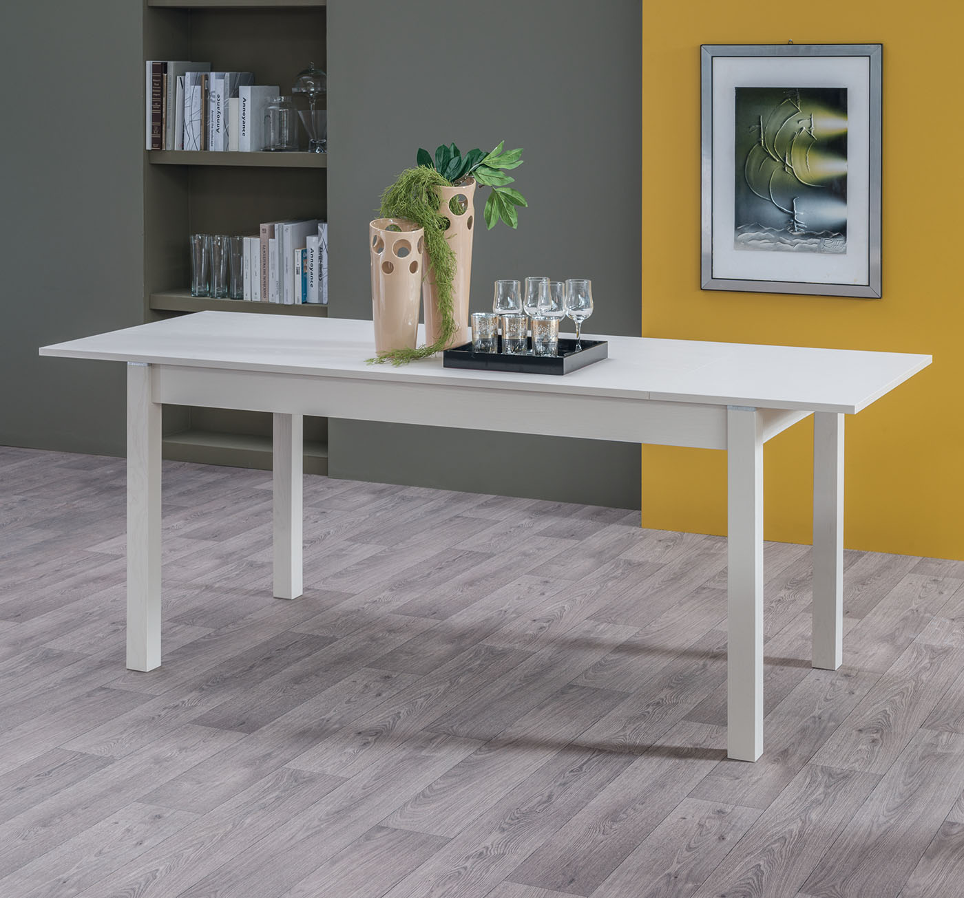 Tavolo con piano melaminico e gambe in legno