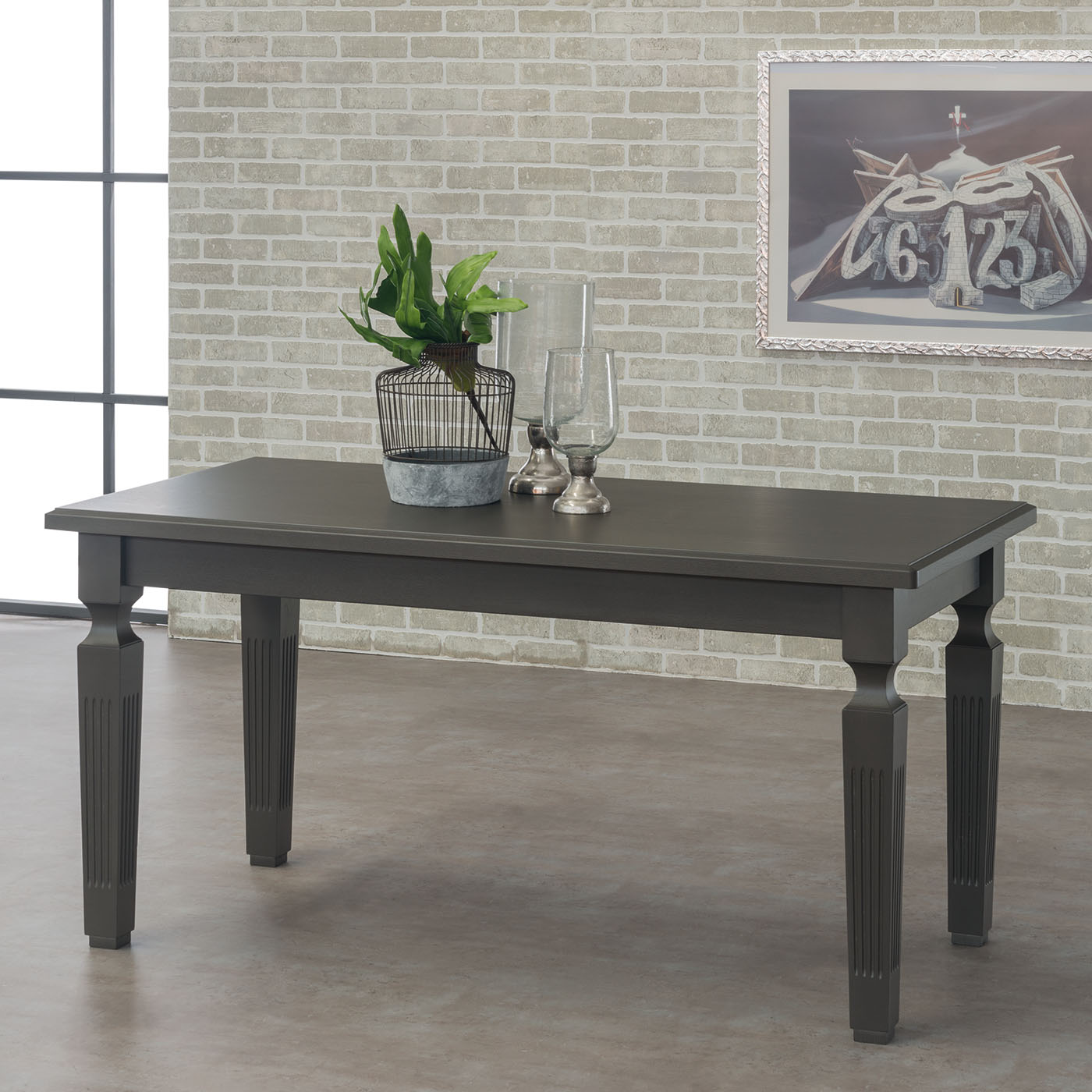 Tavolo con piano impiallacciato e bordo massello, telaio e gambe in legno massello