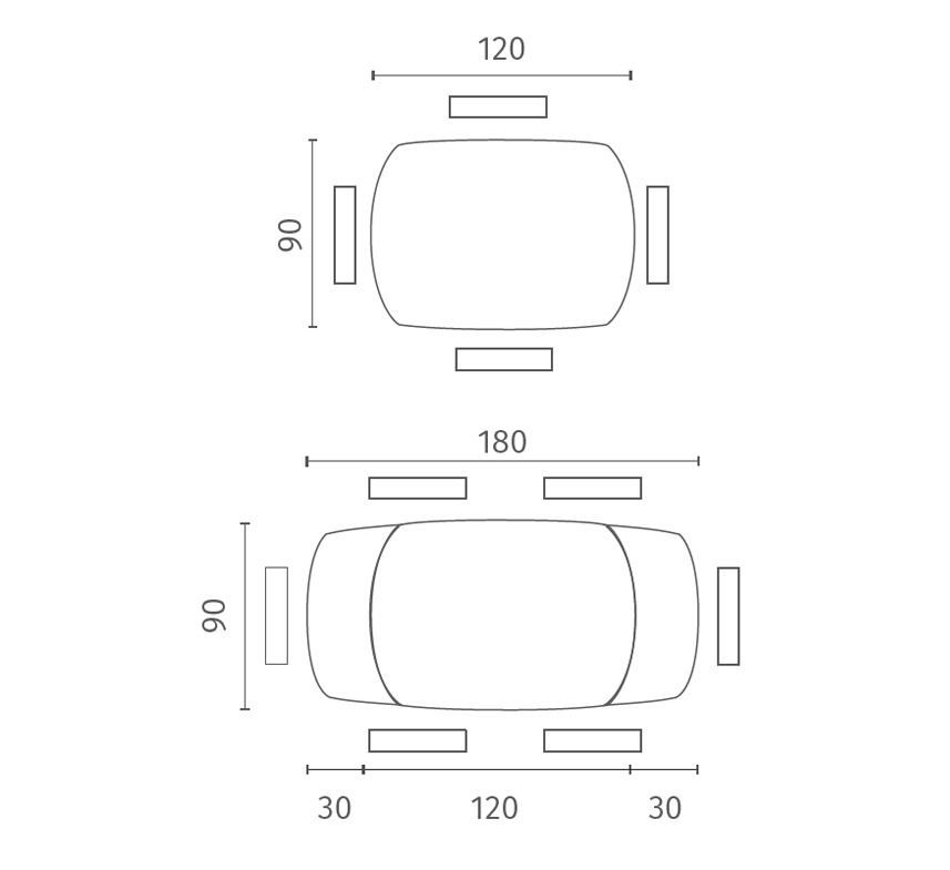 • Ingombro: 90cm X 120/180cm H. 76cm