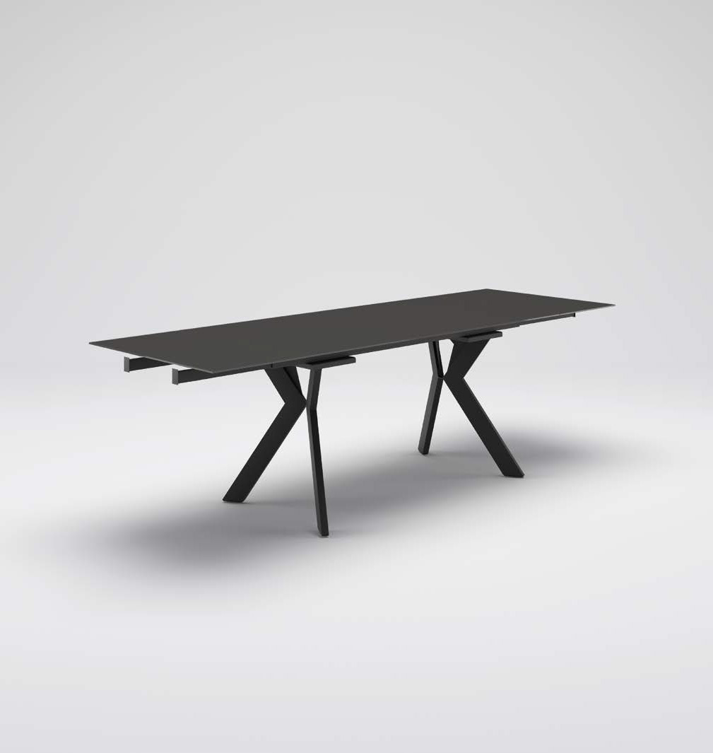 Tavolo con telaio in metallo e piano centrale con due aperture laterali