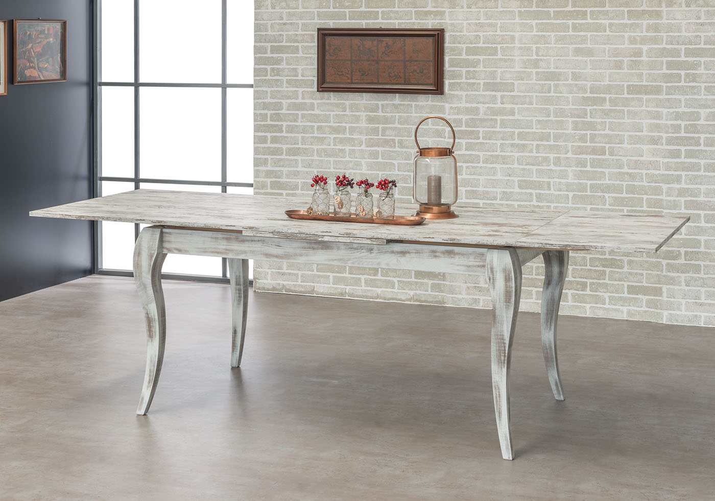 Tavolo con piano melaminico o impiallacciato, telaio e gambe in legno