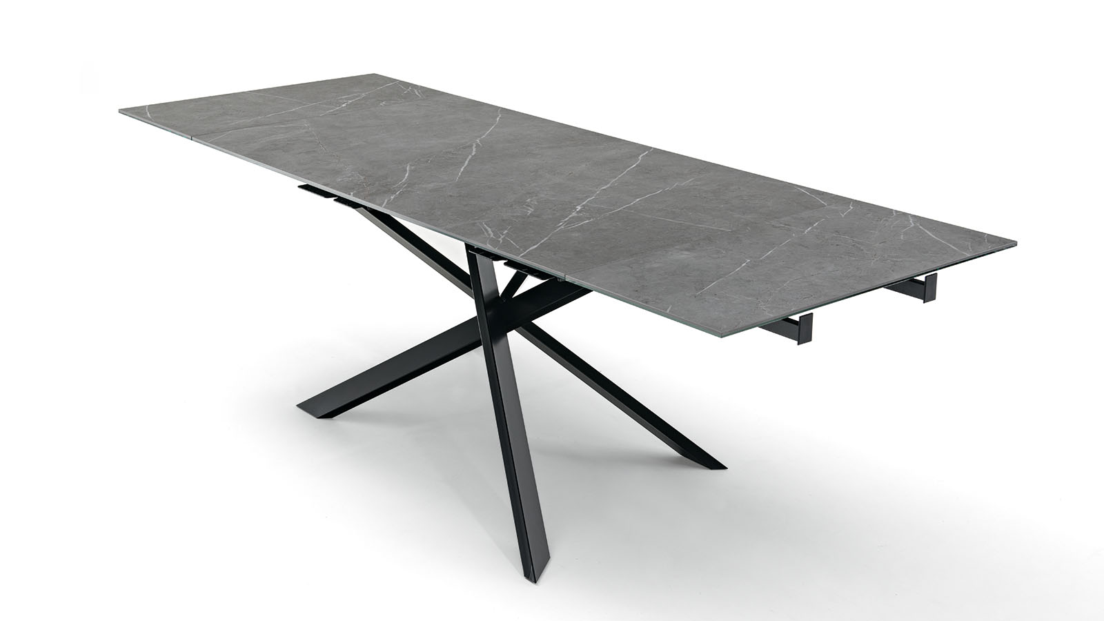 Tavolo con piano in Ceramica, Vetro Bianco, Tortora, Piombo, Ossido Grey, Pietra sale e pepe
