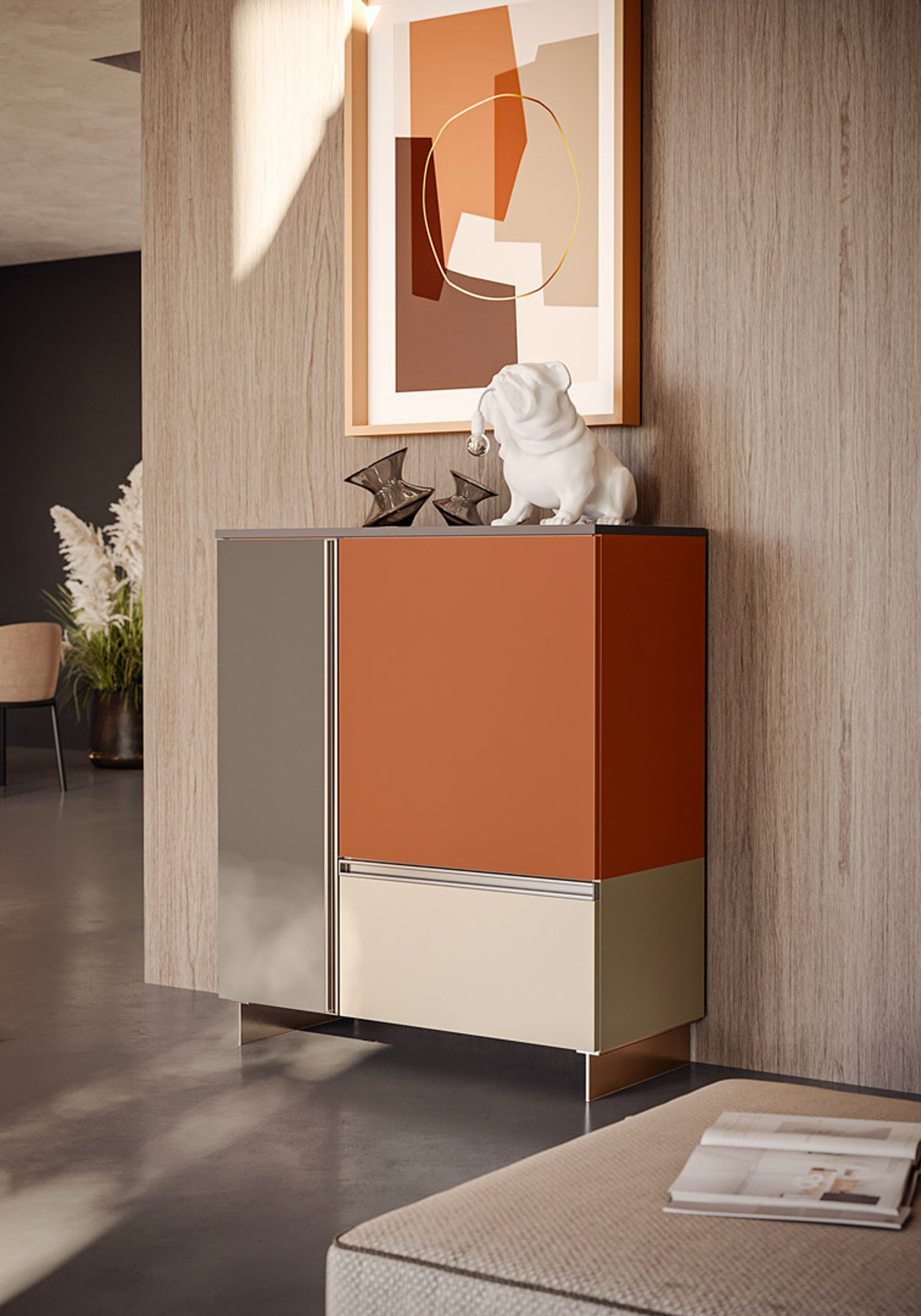 • Madia alta mondrian lacc ruggine, roccia, creta, metallo rame L92 h107,2 p42,3