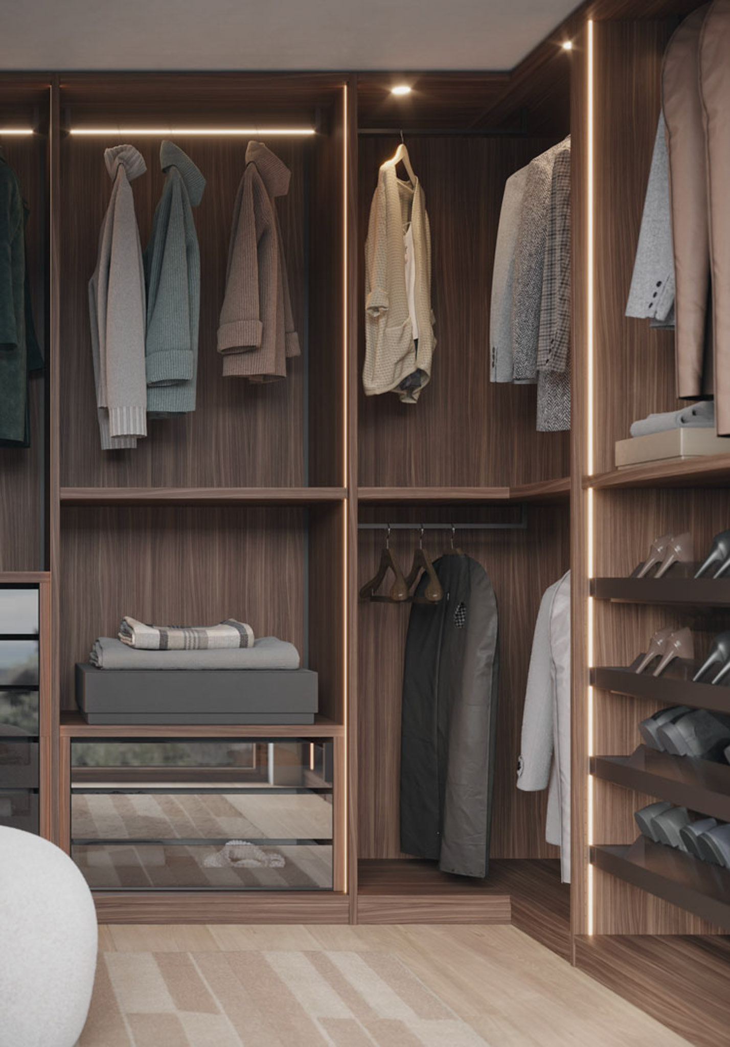 Armadio senza ante nobilitato noce java, vetro scuro, metallo brown