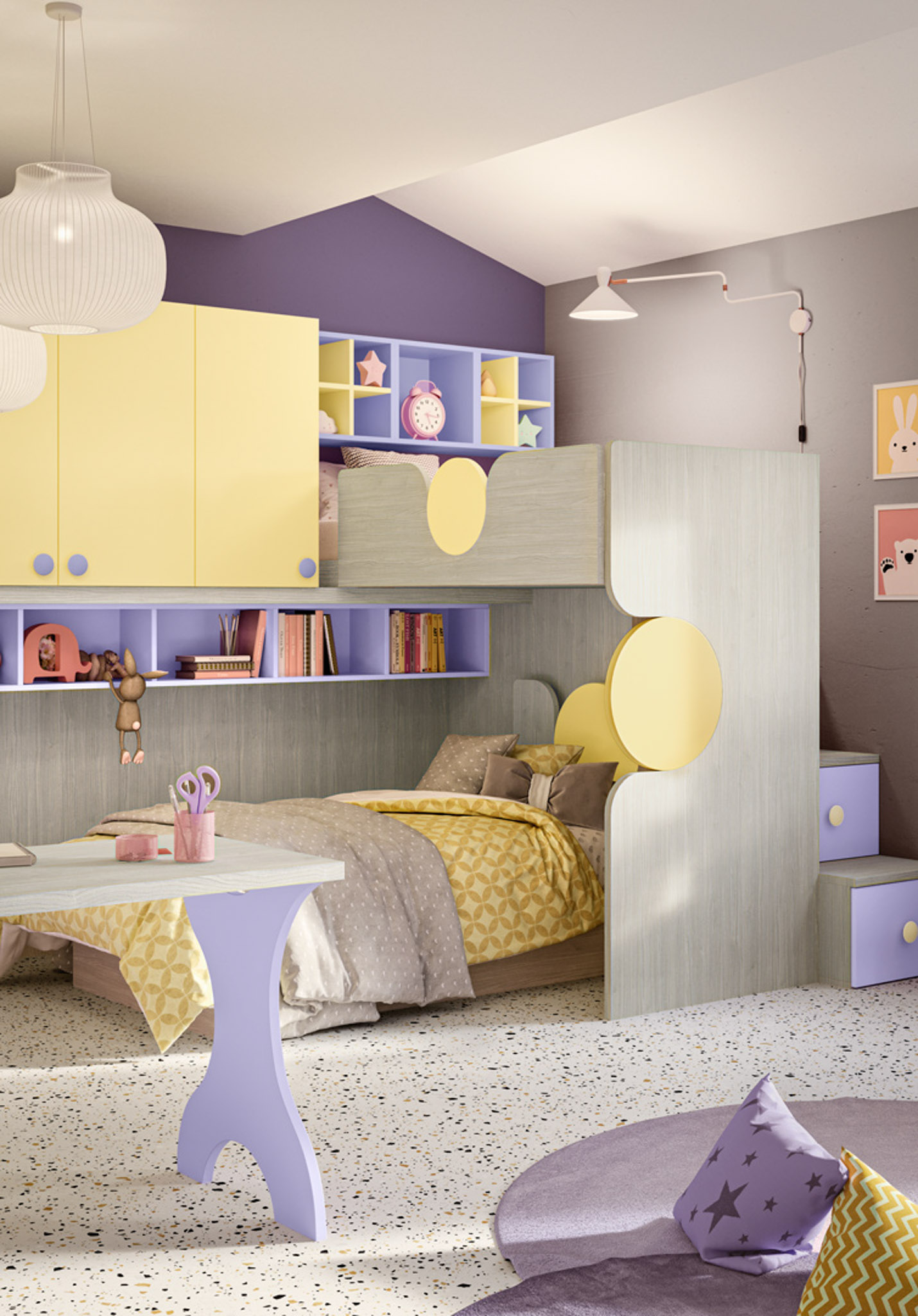 Composizione angolare con letto a soppalco
