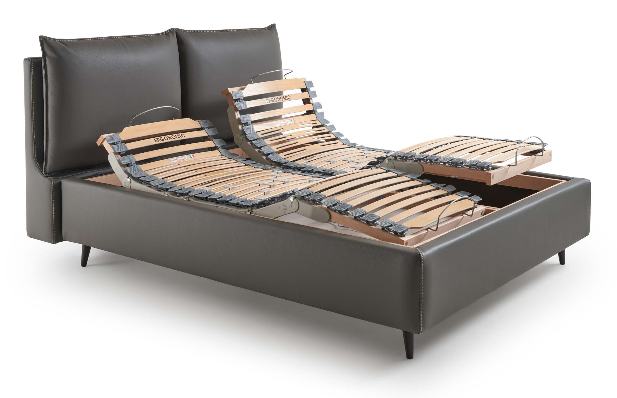 Un equilibrio perfetto tra funzionalità ed estetica. I supporti in legno celati nei cuscini e nello schienale si uniscono alle raffinate impunture a contrasto, per un relax che si distingue nei dettagli.