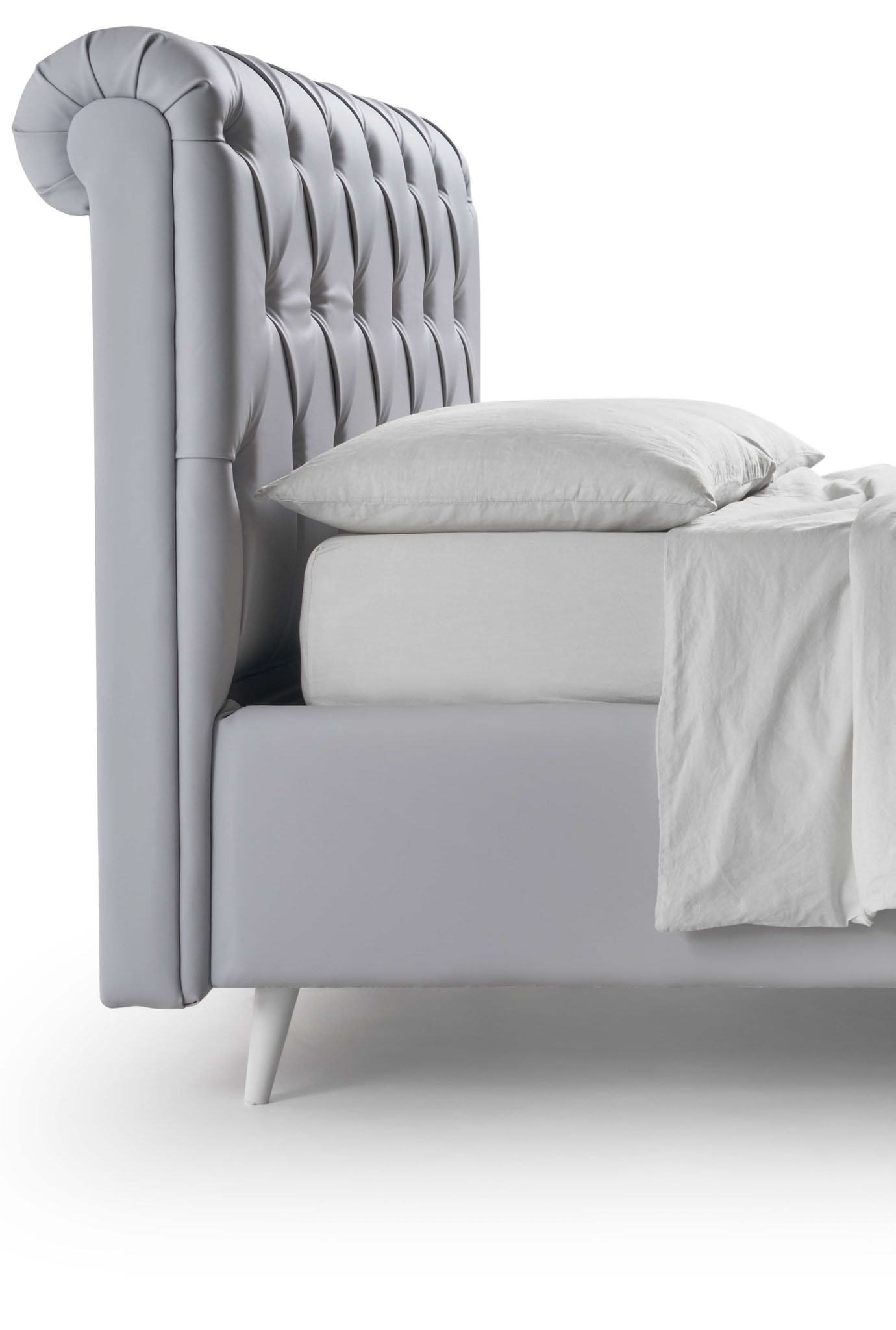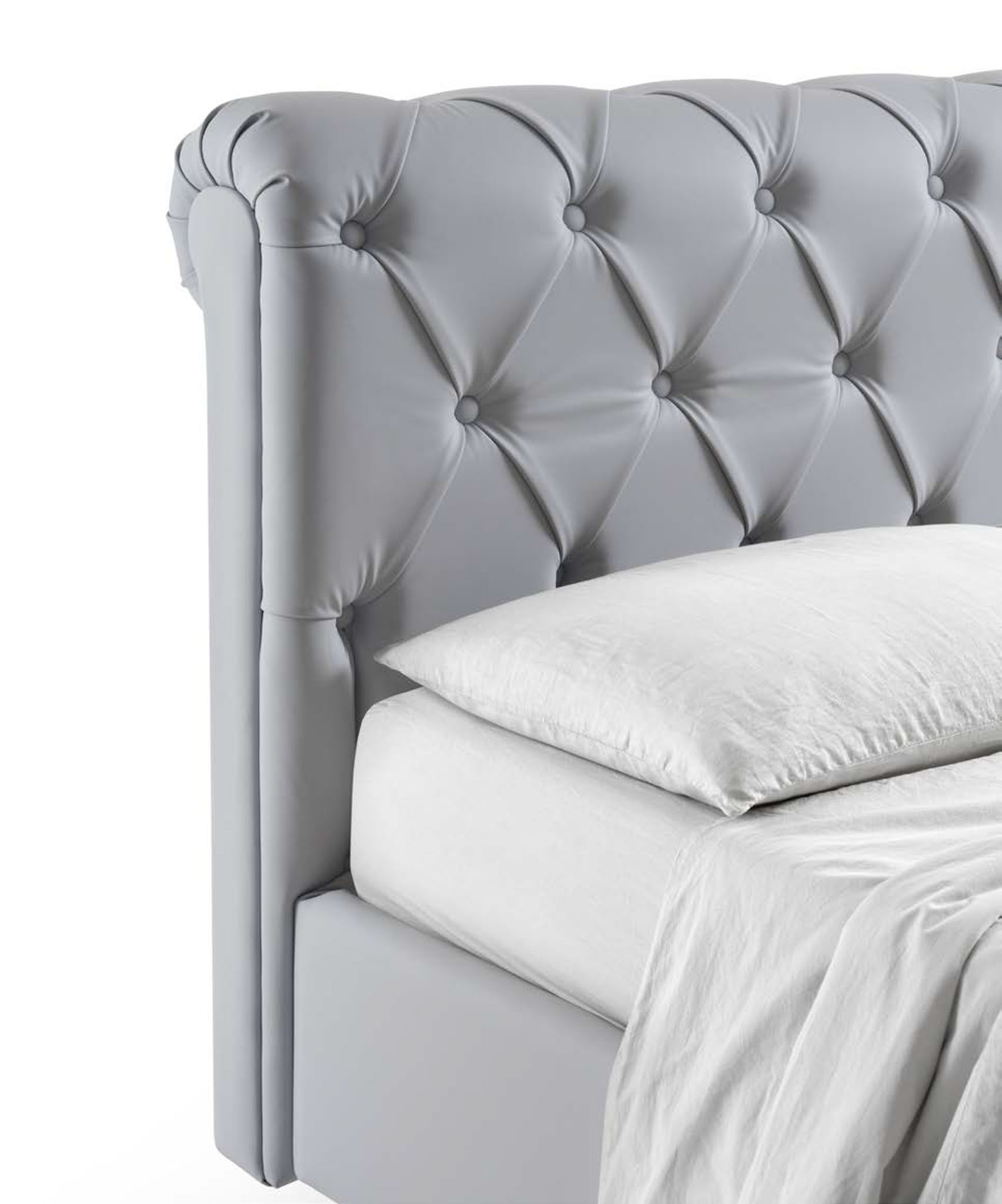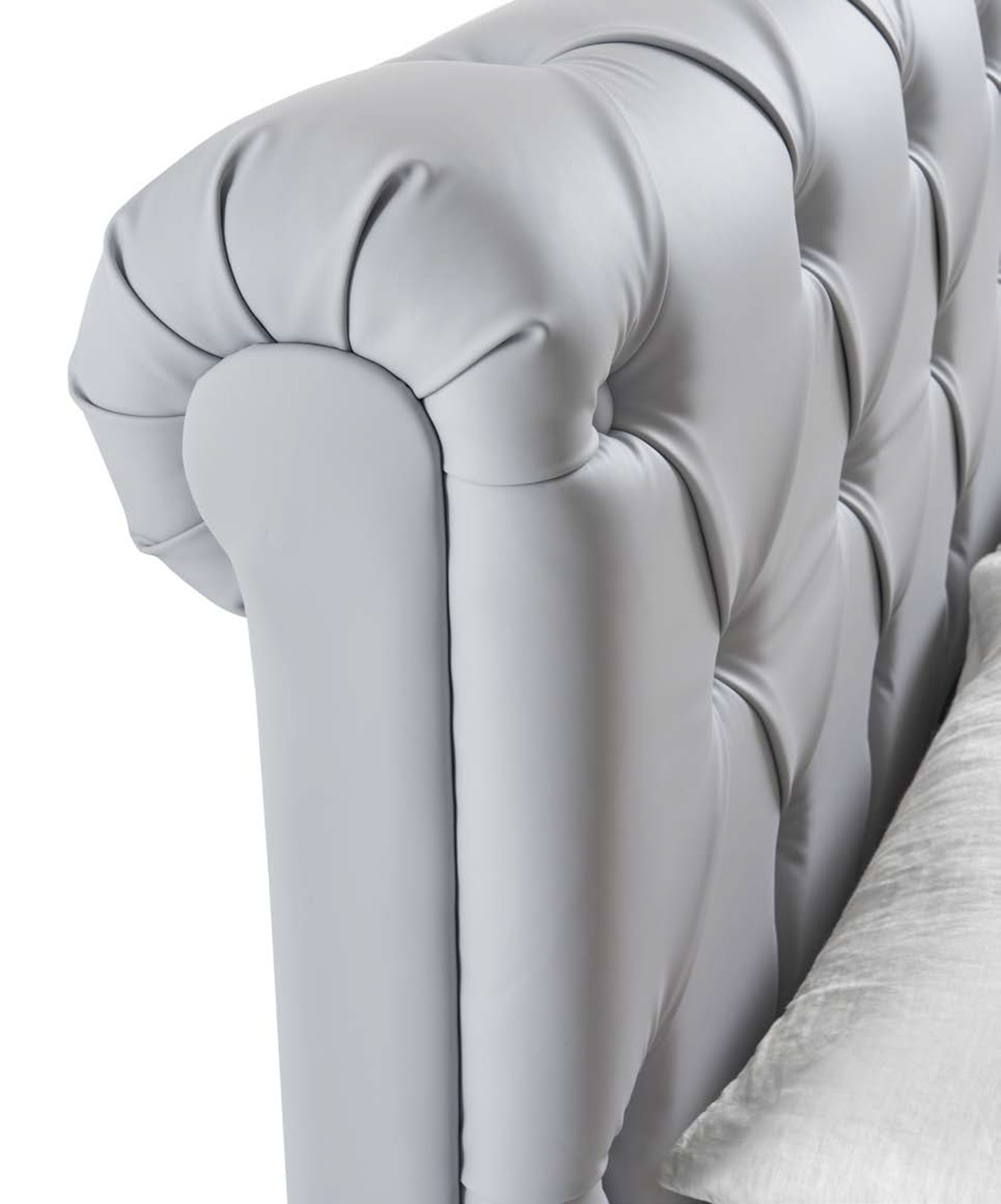 NUBE, un’icona di stile. La lavorazione Chesterfield dona carattere e profondità alla testata, rendendola il punto focale ideale per interni moderni, vintage o dal fascino inglese.