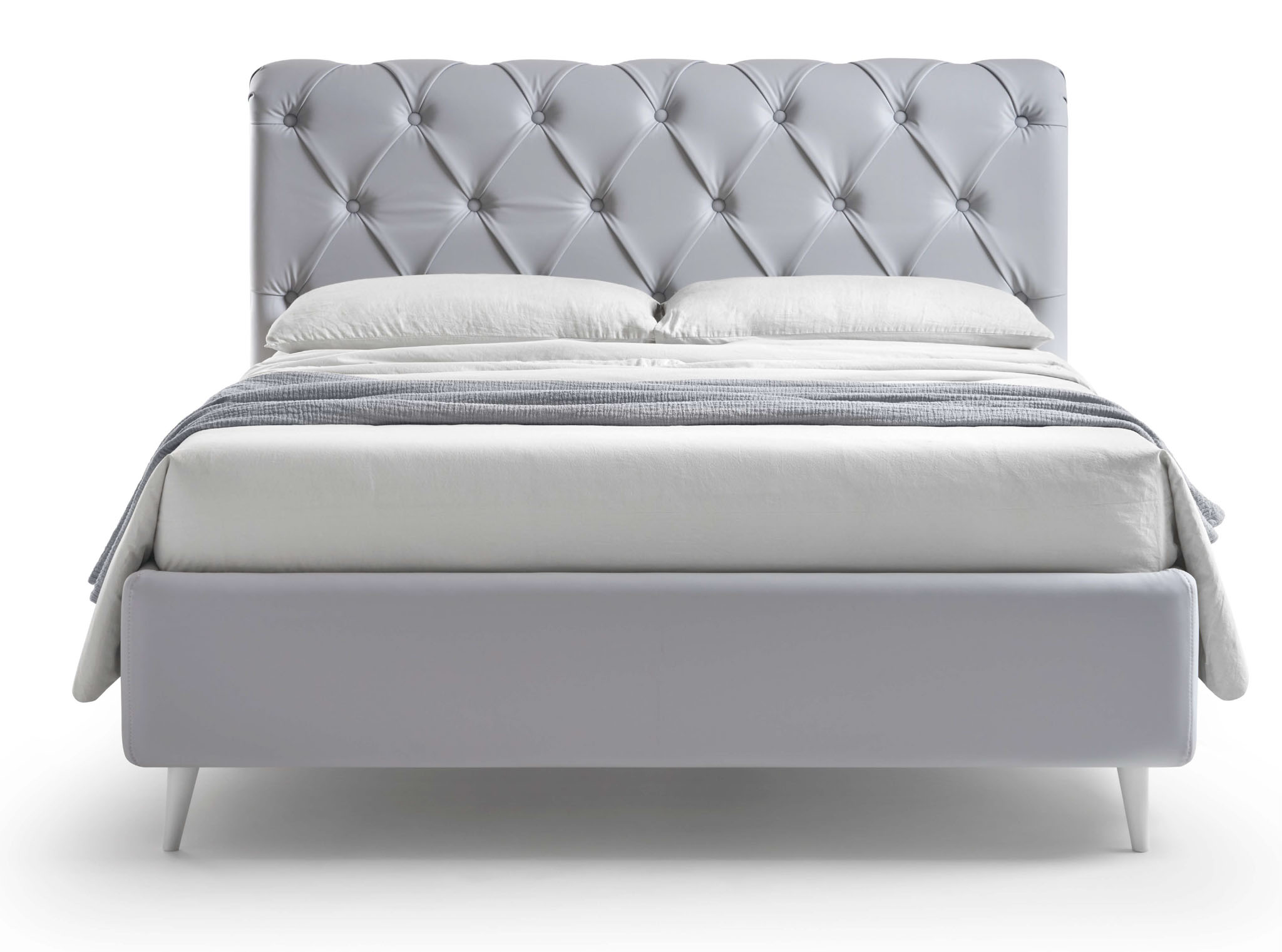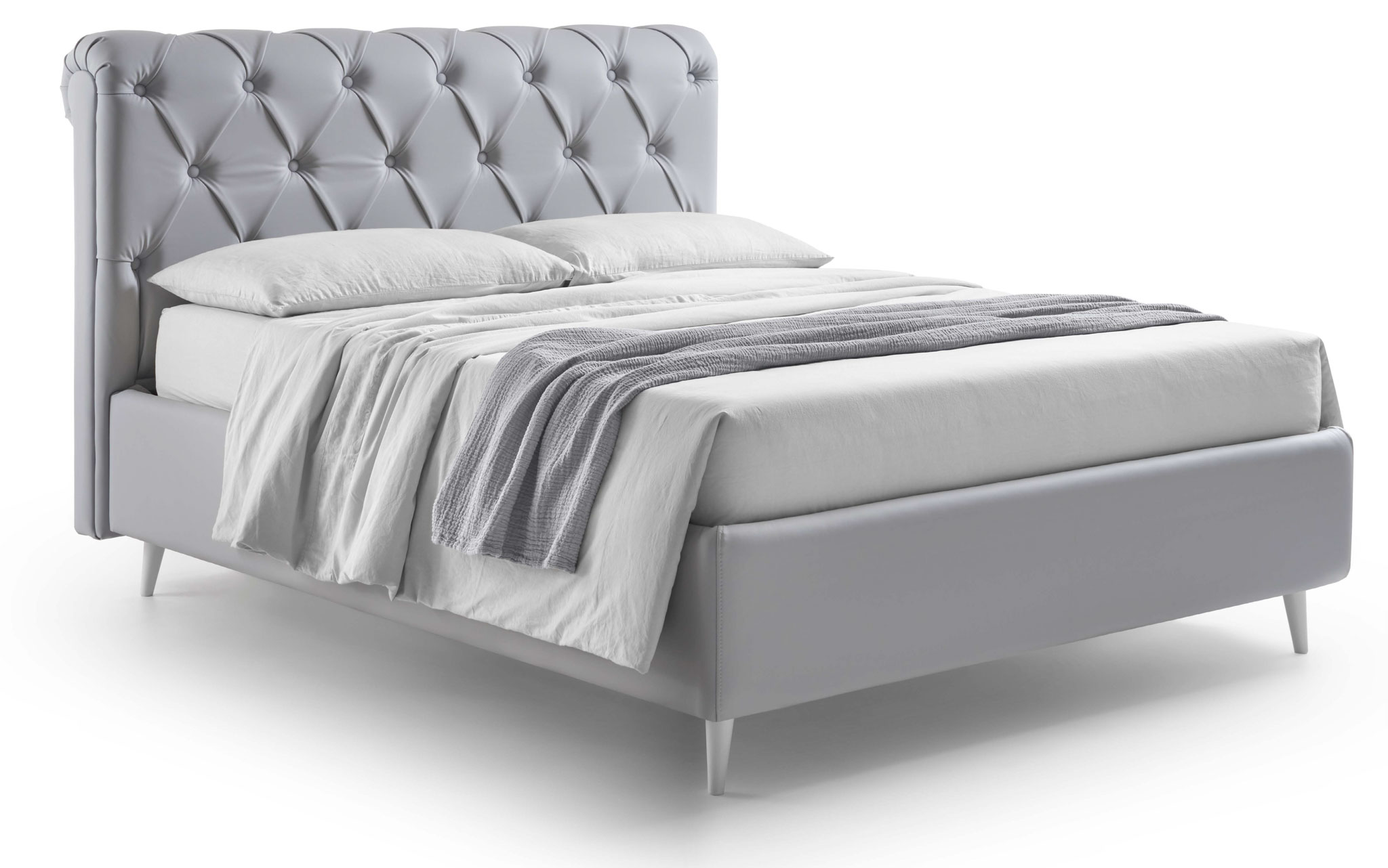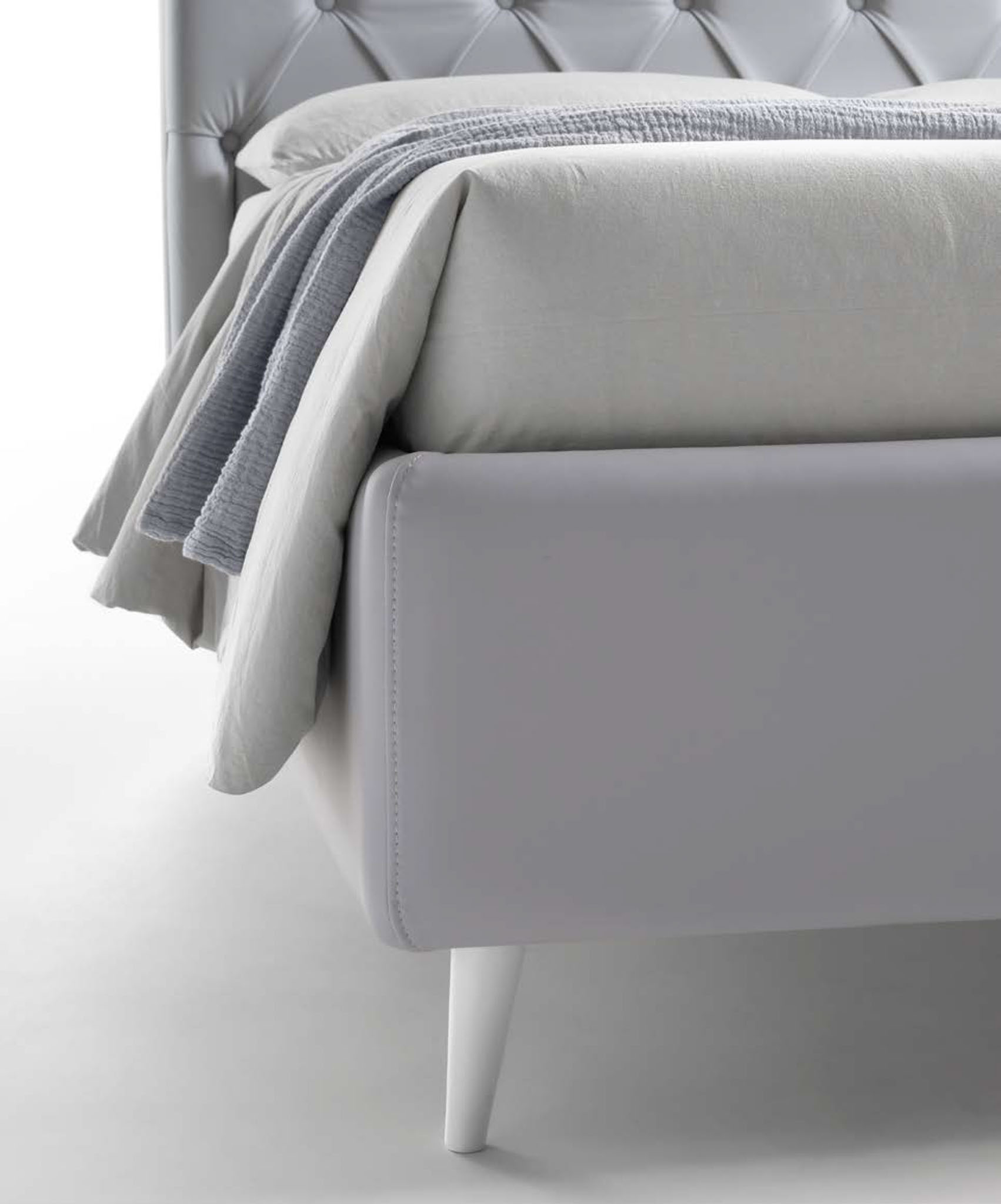 NUBE, un’icona di stile. La lavorazione Chesterfield dona carattere e profondità alla testata, rendendola il punto focale ideale per interni moderni, vintage o dal fascino inglese.