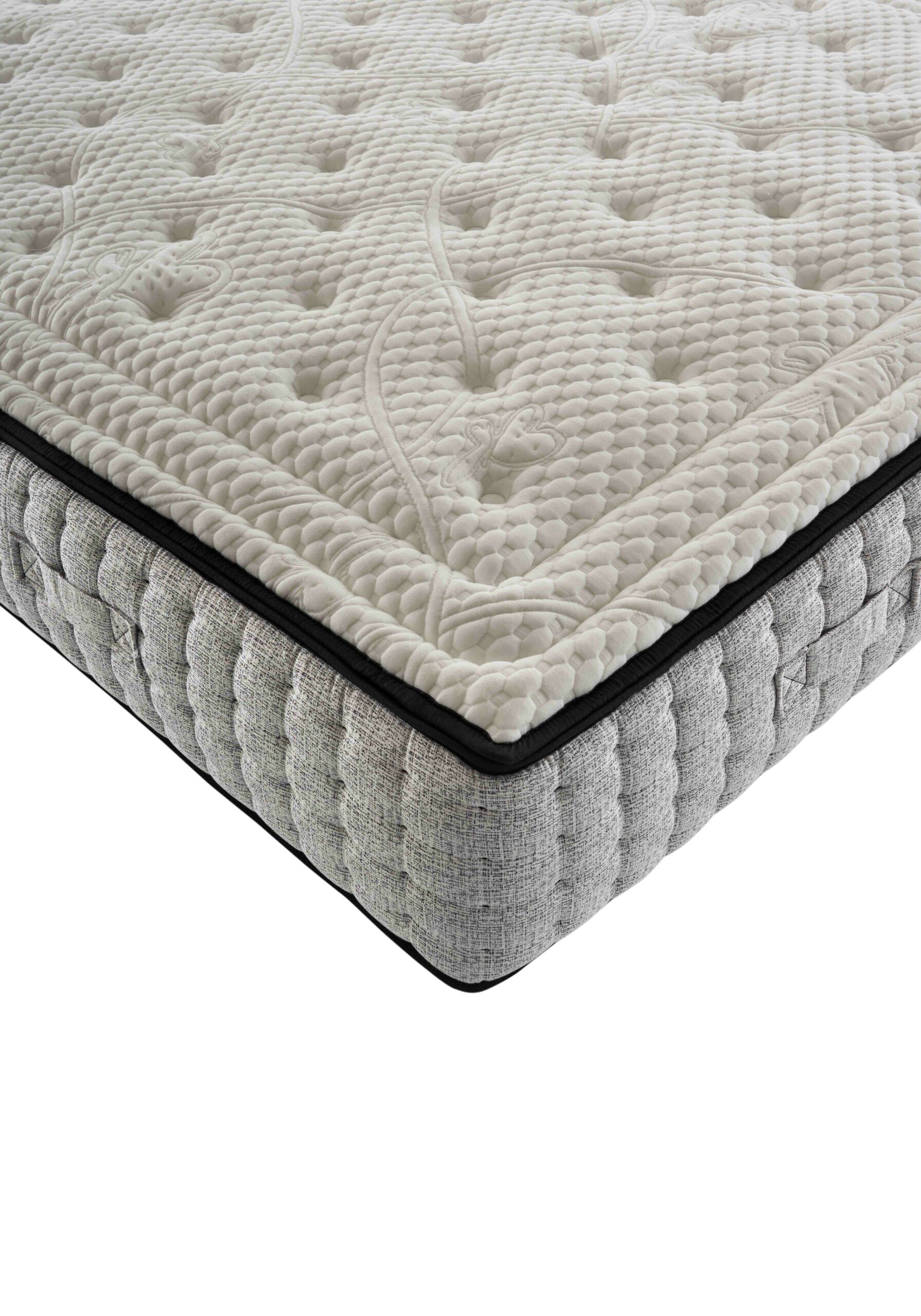 Thermo memory altezza 3 cm densità 40 kg/m3, Eliocell altezza 3,5 cm densità 25 kg/m3 ambo i lati. Molleggio a micro molle insacchettato differenziato. Maglina elastica interna di protezione. 3200 molle insacchettate nella misura matrimoniale.