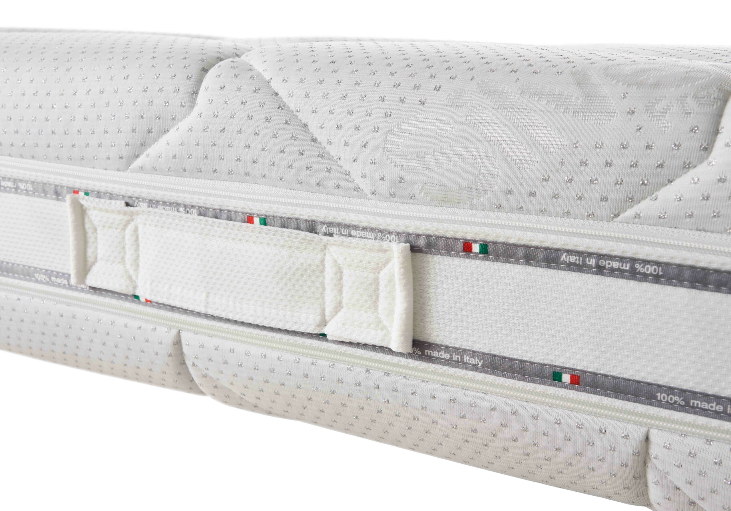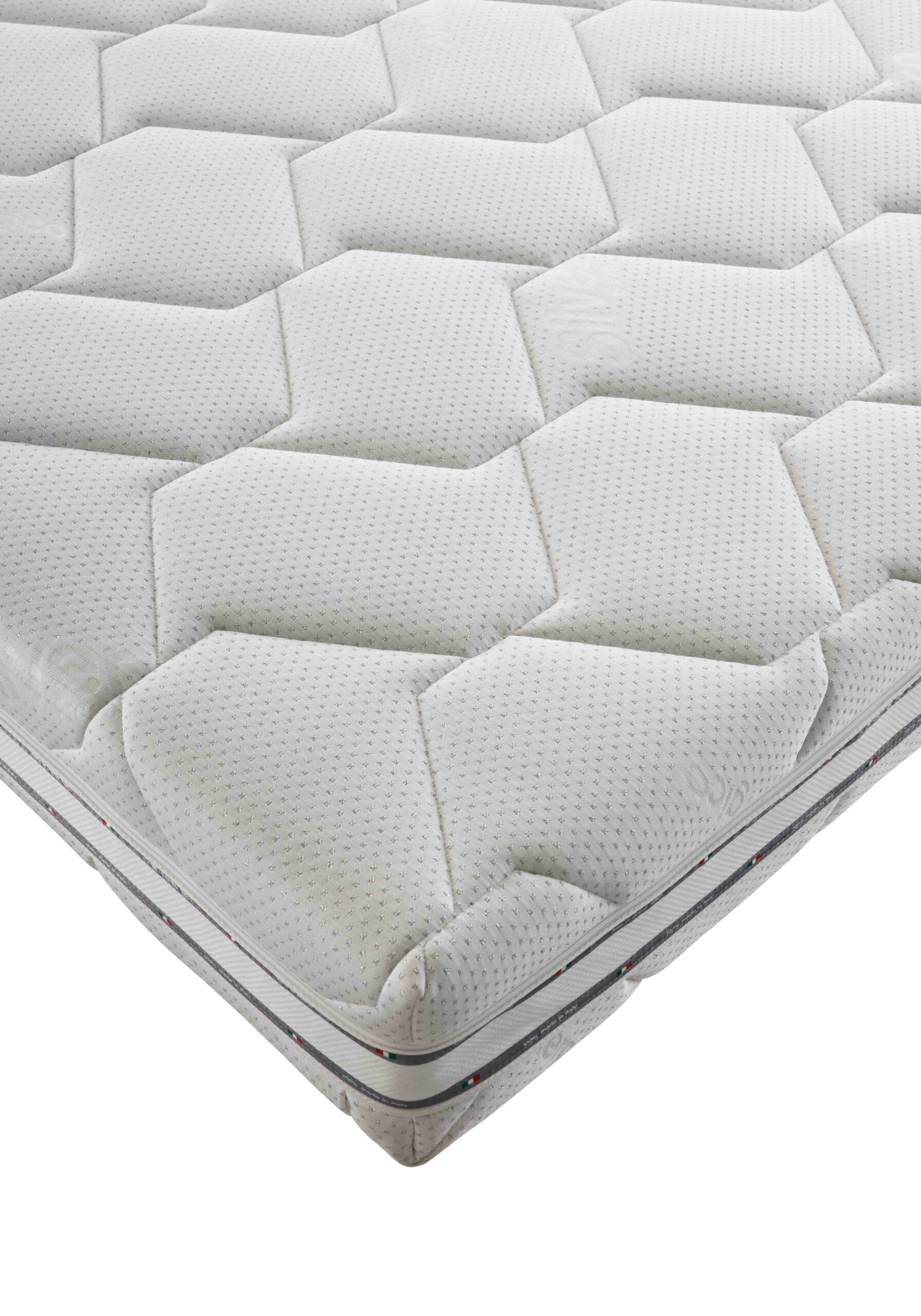 Memory altezza 4 cm densità 40 kg/m3, Eliocell altezza 14 cm densità 25 kg/m3. Maglina elastica interna di protezione.