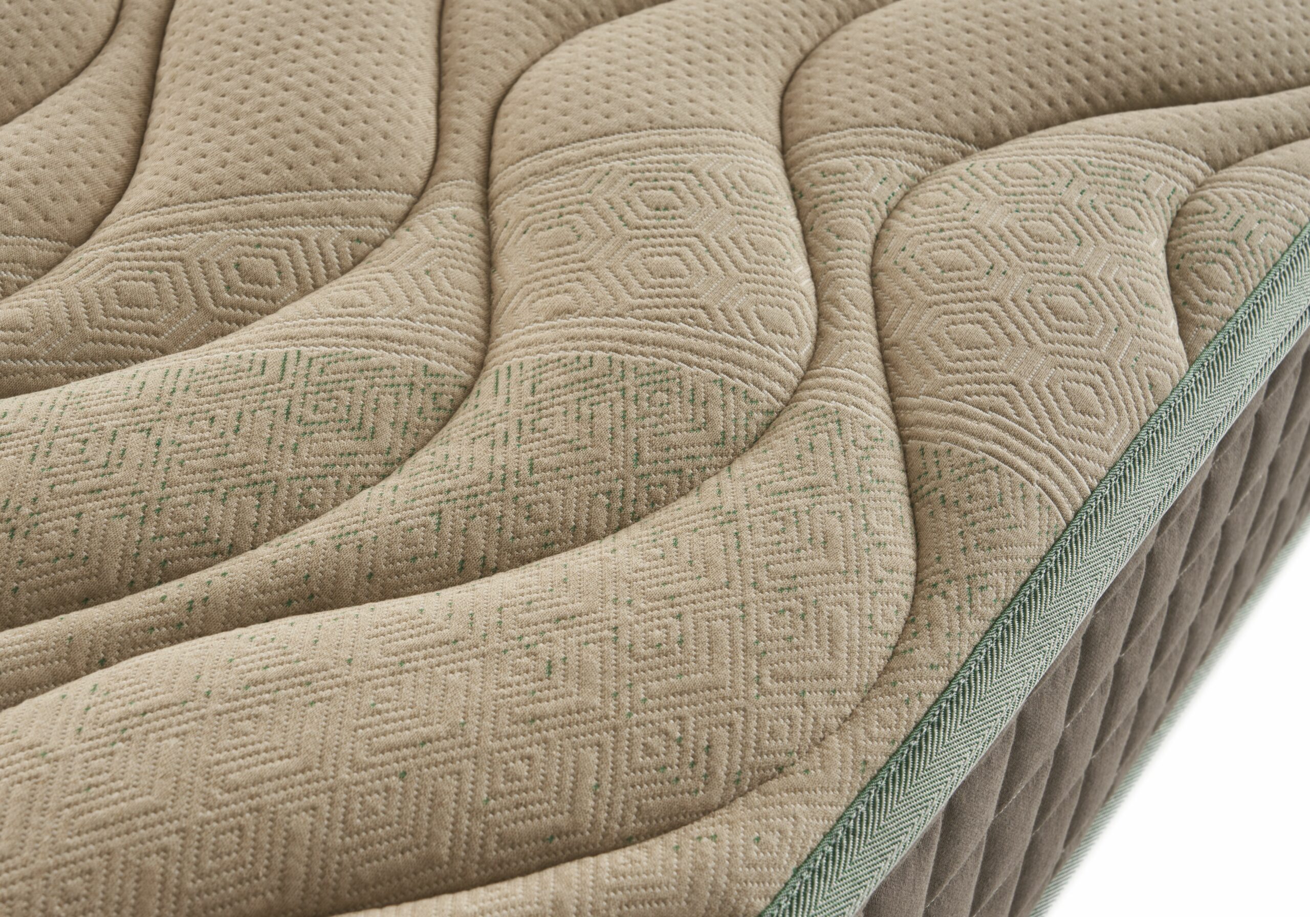 Poliuretano CIRCULARREFOAM® in doppio comfort: strato superiore portanza medium altezza 5cm densità di 30kg/m3 e base firm altezza 15cm densità 35kg/m3. Maglina elastica interna di protezione.